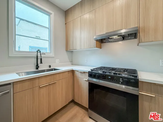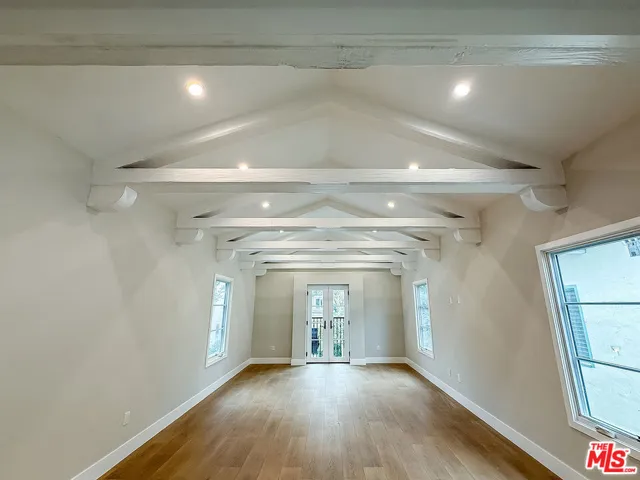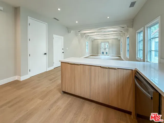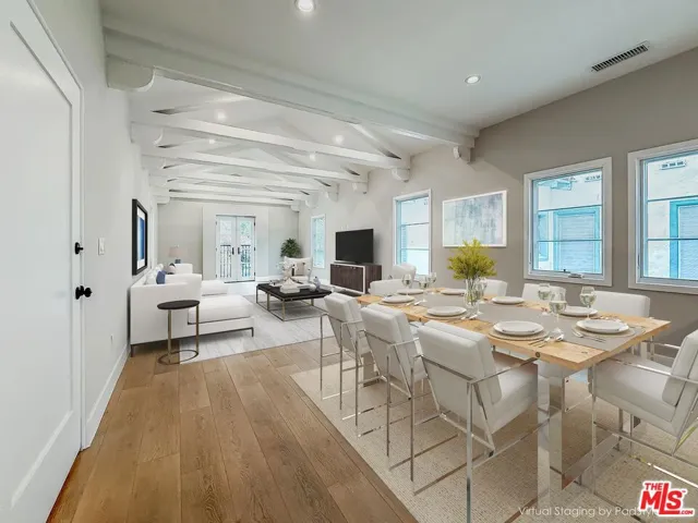Stunning, Fully Remodeled Top-Floor 2-Bedroom Residence in Prime Beverly Hills! Welcome to this beautifully redone top-floor 2-bedroom, 2-bathroom unit offering approximately 1,350 sq ft of sophisticated living space in the heart of Beverly Hills. Every inch of this home has been meticulously remodeled with high-end finishes and modern conveniences, creating the perfect blend of luxury and comfort. Flooded with natural light, the open-concept layout is ideal for both everyday living and entertaining. The living room features vaulted ceilings with gorgeous exposed wood beams and a charming Juliet balcony that invites in fresh air and tree-lined views. The gourmet kitchen showcases sleek custom cabinetry, quartz countertops, and top-of-the-line stainless steel appliances. Luxurious bathrooms offer spa-like walk-in showers, floating vanities, designer tilework, and luxury fixtures. Additional highlights include new laminate flooring throughout, dual-pane windows, recessed lighting, stylish light fixtures in the bedrooms, ample closet space, and in-unit washer and dryer. Central air and heat provide year-round comfort, and off-street parking is included.Located just minutes from world-class dining, shopping, and entertainment, this home offers an exceptional lifestyle in one of Los Angeles’ most prestigious neighborhoods. A rare opportunity to lease a top-floor luxury residence with unique character and modern style! Schedule your private showing today!
