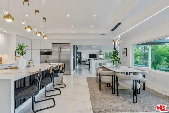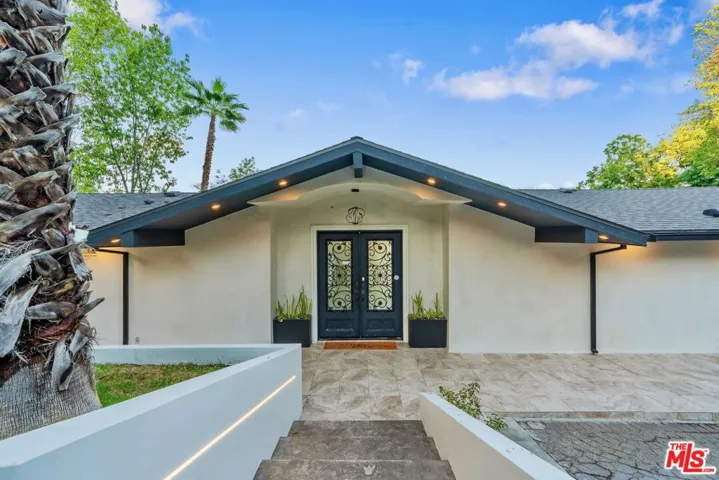 Ideally situated south of the boulevard in one of Tarzana’s most coveted hillside enclaves, this ultra-private, fully remodeled California Contemporary is hidden behind a long gated driveway and invisible from the street, truly one of Tarzana’s best-kept secrets. Spanning 2,752 square feet of interior living on a 0.55 Acre usable lot, this home is an entertainers paradise with seamless indoor/outdoor living across three levels, with a massive pool, stunning valley views and a completely private backyard. Every detail has been meticulously reimagined, from the smooth Venetian-plastered walls and LED-lit stairways to the chef’s kitchen outfitted with sleek custom cabinetry, Wolf and Thermador appliances, and designer finishes throughout. The main level features an open-concept living and dining area with walls of glass framing sweeping vistas, an elegant powder room, and a stunning primary suite with a spacious walk-in closet and spa-inspired bath complete with heated floors and exquisite materials. Downstairs, discover three additional bedrooms, including a secondary primary suite with its own en-suite bath, plus a second full bath, a family room with built-in wet bar, and generous storage, making the home ideal for hosting, guests, or multi-generational living. Outside, the property unfolds into a true entertainer’s paradise: multiple lounging and dining terraces, a massive heated pool and hot tub, expansive deck space, and a large fenced backyard with endless potential for ADUs, sport courts, or custom outdoor living spaces. Additional highlights include a fully automated smart-home system, two-car garage, ample gated parking, and exceptional privacy throughout. A rare blend of modern design, scale, and seclusion, this Tarzana hillside retreat embodies the very best of Southern California living.