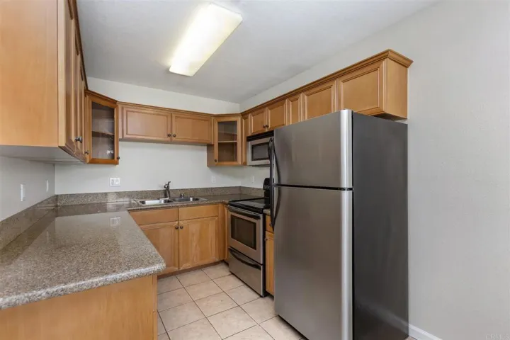 Available for December 1st Move-In! Top level 2 bed/2 bath bright unit with an assigned parking spot! This unit features an open floor plan with large living room, dining nook off the kitchen and spacious bedrooms. The kitchen has beechwood cabinets, granite counters, and SS appliances incl. fridge. The primary bedroom boasts dual mirrored closets and an ensuite bathroom with a large vanity and walk-in shower! Gated community with pool and community laundry room! Enjoy the convenient location close to shopping, restaurants, plus easy Fwy access to the 805, 163, and 15! Also close to school and 15 minutes to the beach. Pets considered with restrictions. 12 month lease with option to renew. Room dimensions & sq footage are approximate and not guaranteed.
