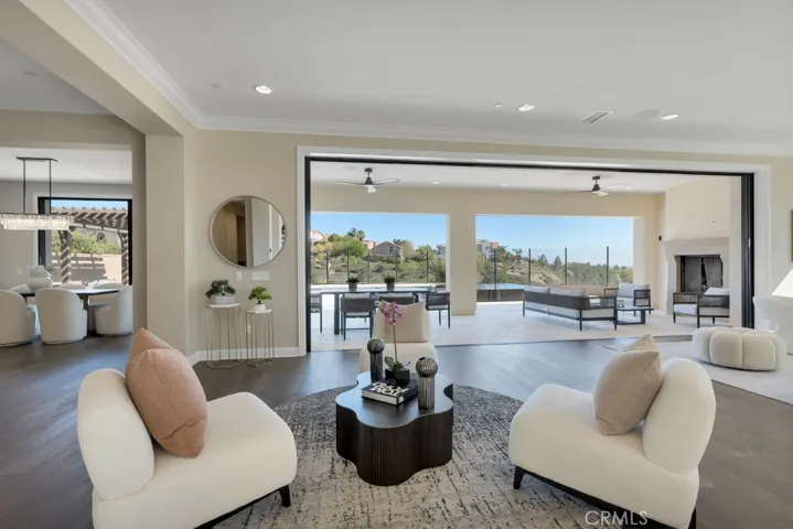 Will consider rent with option to purchase. Stunning luxury estate with panoramic views, ideally positioned at the end of a peaceful cul-de-sac in the exclusive, 24-hour guard-gated Westcliffe at Porter Ranch community. One of the larger properties in the neighborhood, this impressive Spanish Colonial Palisades model by Toll Brothers offers 5,710 square feet of refined living space, featuring 5 bedrooms, 5.5 baths, and an additional flexible room located just behind the kitchen. Fully reimagined in 2025 with a complete interior renovation and landscape redesign, the home showcases dark-stained white oak hardwood floors throughout, natural stone countertops, and luxury appliances from Sub-Zero and Wolf. Expansive multi-panel glass doors open to the patio and courtyard, creating a seamless indoor/outdoor flow ideal for entertaining. The newly completed pool, spa, and outdoor kitchen (finished September 2025) are surrounded by travertine pavers, lush softscaping, and wireless automated pool equipment, delivering a true resort-style experience in a private, tranquil setting.