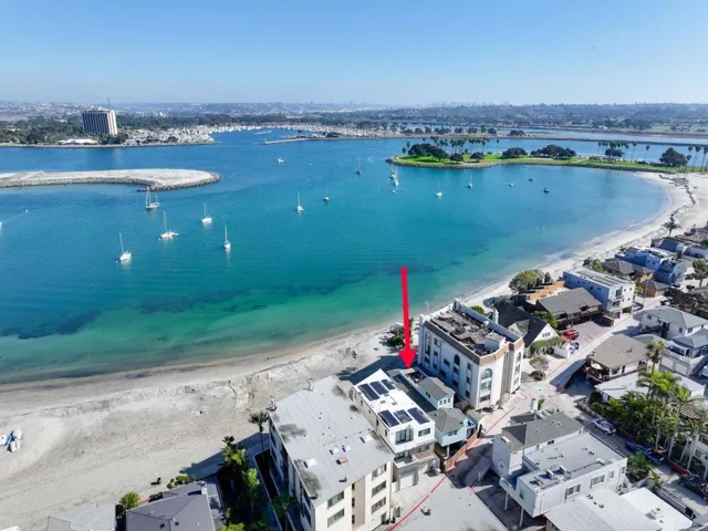 Entertainer’s Paradise with Unmatched South Mission Bay Access. Presenting a rare opportunity to own a stunning single-family home on the bayfront of South Mission Beach, one of San Diego’s most iconic communities. This entertainer’s paradise features 3,000 sq ft of living space, including 4 bedrooms, 3.5 baths, a third-floor private bonus room and a rooftop patio with forever panoramic Easterly views. The main level offers an open-concept layout with a custom kitchen and a spacious center island, perfect for gatherings. Enjoy seamless indoor-outdoor living with sliding glass doors opening to an expansive bay-facing patio, complete with a unique oversized spa. Additional amenities include gated covered parking for two vehicles, a large, secured storage area for water sports equipment, and direct access to bay sand frontage. Just steps to the sand, paddle-boarding, boating, ocean surfing, dining, and shopping. This property is ideal for a private residence, vacation home, or high-income rental. Don’t miss your chance to own a piece of paradise at South Mission Beach.