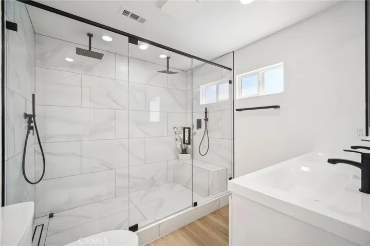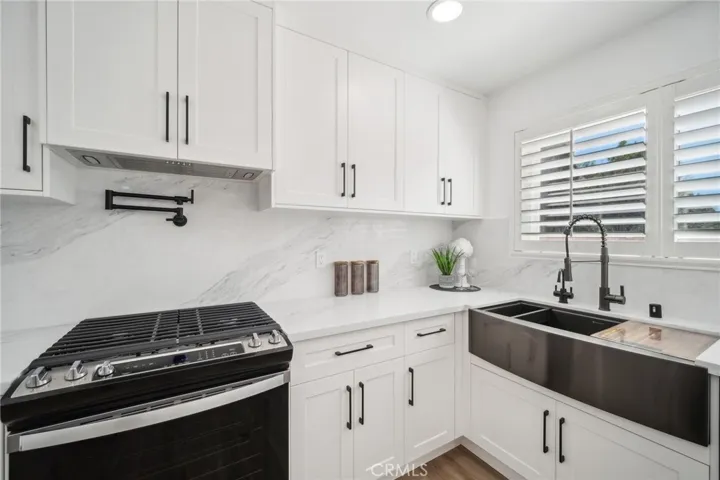 Beautifully remodeled gated home located in a highly desirable Porter Ranch neighborhood. Features include 5 bedrooms and 3.5 updated baths with over 2150 sqft of living space. Walk through the double doors and be amazed what this true beauty has to offer. Large light & bright living room with modern fireplace opens to the dining area, brand new custom kitchen with quartz counters, a pot filler and stainless steel appliances, two large bedrooms and two large bathrooms downstairs, 3 bedrooms and 1.5 baths upstairs, fully finished two car attached garage with direct access, private back yard with pool and so much more. Additional features include new dual pane windows, laminate flooring and recessed lighting throughout, new paint inside and out, updated central A/C and Heat. This is a must see home in a beautiful neighborhood with great schools and just minutes to the Vineyards in Porter Ranch.