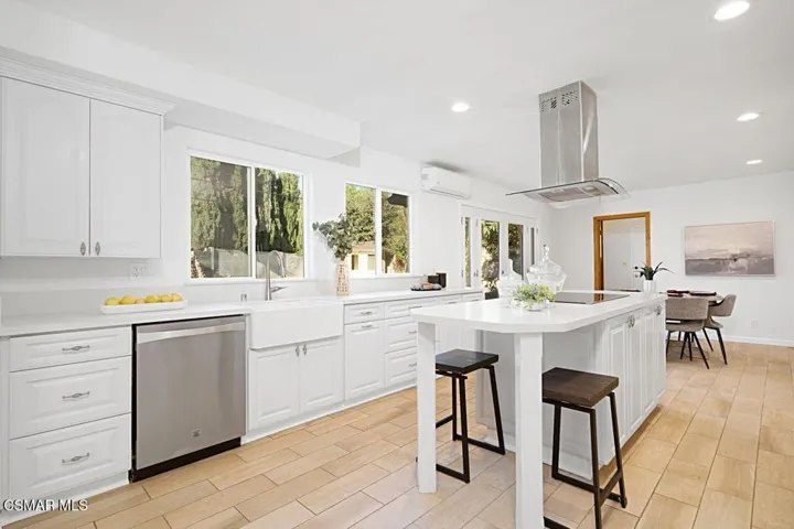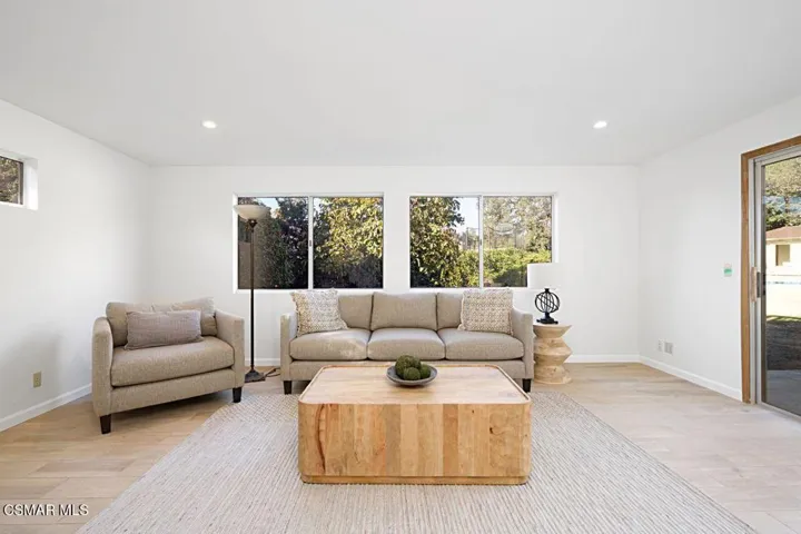 Beautiful corner pool home on an expansive parcel. This amazing property is located in a wonderful neighborhood and offers an array of highly desirable features. The home sits on a parklike corner lot with an impressive front yard. This blank canvas in ready to become a green thumb’s paradise. Attractive hardscaping and mature fruit trees, and a long driveway provide plenty of parking and curb appeal. Step inside to discover gorgeous, tasteful, wood-like ceramic tile flooring throughout the entire downstairs. The bright and inviting living room features a striking stack-stone gas fireplace and opens to the family room which is an ideal space for an art studio, reading nook or sunny dining area. The beautifully remodeled kitchen is a chef’s dream, complete with quartz counters, soft-close cabinetry, a center island, farmhouse sink, and stainless steel appliances. Enjoy the convenience of downstairs living with a spacious bedroom and bath featuring a double sink vanity and stunning stone/tile shower. Upstairs, the large, light-filled primary suite includes a private deck, generous closets and an ensuite bath. Two additional bedrooms offer ample closet space and share a remodeled full bath. The home also features a large laundry room with abundant cabinetry and outdoor access to the expansive backyard. Entertain or relax by the sparkling pool surrounded by patios, stone fountain and mature fruit bearing trees. There is a large built-in storage shed which adds even more functionality. Lots of room to add an ADU/guest house. Plenty of room to park an RV, boat or other vehicles. This exceptional property combines space, comfort and style. A perfect blend of indoor-outdoor California living. No HOA. Near Old Meadows Park, Conejo Creek Park, the Goebel Adult Center, Thousand Oaks Teen Center and Thousand Oaks Library. Don’t miss this opportunity, your next chapter starts here!