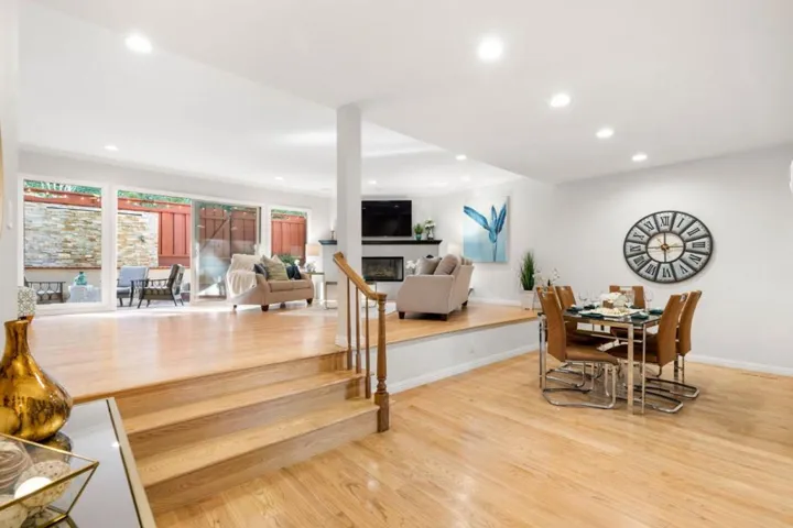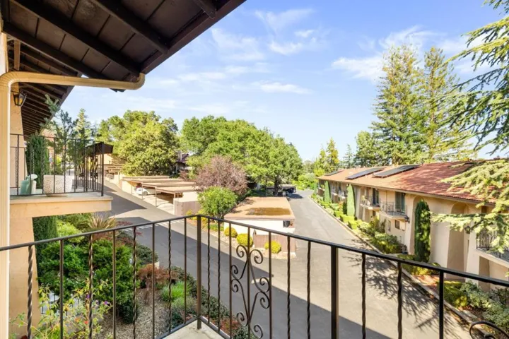 Elegant Los Gatos townhome offering luxury living just moments from downtown! This beautifully refined 3-bedroom, 2.5-bath residence features a spacious split-level living and dining area with gleaming refinished floors, fresh designer paint, and a cozy gas-starter fireplace perfect for entertaining. The gourmet kitchen showcases granite countertops, quality cabinetry, and ample workspace. Upstairs, natural light pours through skylights, complementing the serene ambiance. The luxurious primary suite is a true retreat with sweeping mountain views, a generous walk-in closet, and a spa-inspired bathroom with a large stall shower and light-up vanity mirror. Enjoy the convenience of upstairs laundry and unwind in the private backyard oasis complete with a tranquil waterfall feature. Nestled in a peaceful community behind downtown Los Gatos with two pools above and below this unit. This exquisite home combines modern comfort, elegant design, and an unbeatable location near fine dining, boutiques, and scenic trails.