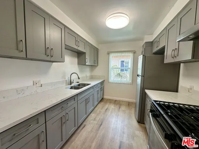 This top-floor, beautifully renovated one-bedroom, one-bathroom unit offers a comfortable and spacious layout with great natural light throughout. Featuring handsome hardwood flooring, a fully renovated kitchen with granite countertops and brand new stainless steel appliances, including a new dishwasher. The spacious bedroom offers a large closet and the bathroom has been tastefully updated. Freshly painted and ready to move in, this unit includes one assigned parking space, making it a great place to call home in a peaceful residential neighborhood. Enjoy the Los Angeles lifestyle in this wonderful Beverly Hills-adjacent community.