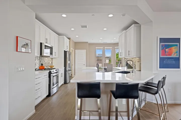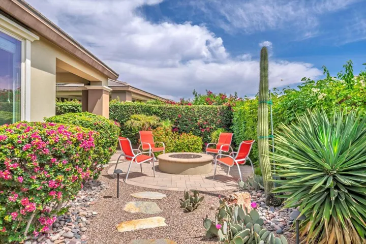 Amazing curb appeal! This house shows better than a Model! Located inside the gates of Trilogy at The Polo Club, this highly upgraded Monaco plan is designed to maximize indoor/outdoor living with multiple outdoor entertaining areas. The home is situated on an oversized home site, and offers excellent curb appeal with a four panel glass garage door and an inviting front courtyard with artistic teak wood wall. The kitchen opens to the large great room & boasts quartz countertops, seated bar, counter island, breakfast nook, and upgraded stainless steel appliance. Wood tile extends throughout the common areas & primary bedroom. There is a large office/den area that features a 15′ rolling glass door that opens to the professionally designed rear yard & covered patio; featuring pavers and a large fire pit. The large master suite features a dual sink vanity & walk-in closet. Additional options include upgraded fixtures & doors, designer ceiling fans, & custom window coverings. This home also includes a solar system that offsets the majority of your electric bill. This home offers casual elegance and is only a short distance to the Clubhouse and large greenbelt. A Polo Club membership is available with $1,875 transfer fee. Membership includes access to the Polo Club, fitness center, pickleball & tennis courts, resort pool, lap pool, artisan studio, card room, banquet facilities, golf simulator, billiards, and so much more.