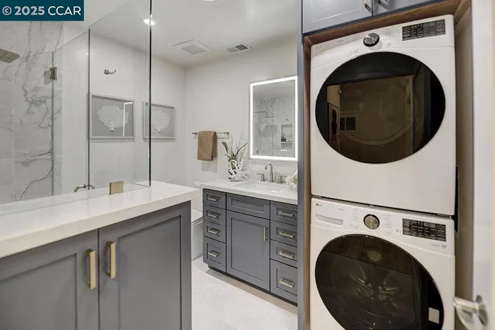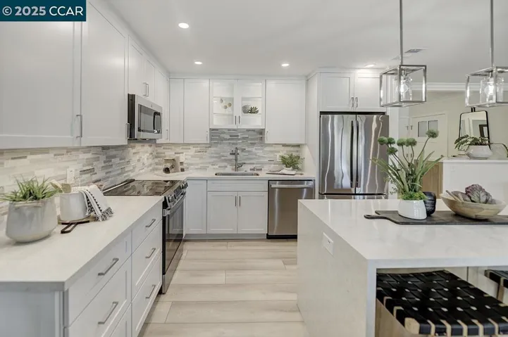 Experience the perfect blend of style, comfort, and serenity in this beautifully remodeled Sequoia model, ideally located at the end of a quiet court on Canyonwood with stunning views of open space and lush greenery. Every inch of this home has been thoughtfully redesigned—from the sleek kitchen featuring solid stone counters, a dramatic waterfall island, custom cabinetry, and stainless steel appliances, to the spa-inspired bathroom with elegant finishes, a seamless glass shower, and a full-size washer and dryer. Sunlight pours through new dual-pane windows and skylights, highlighting the luxury vinyl plank flooring, crown molding, and designer touches throughout. With a convenient carport just steps away and an unbeatable setting that feels worlds away yet close to everything, this home is truly a showstopper—modern living at its very best!