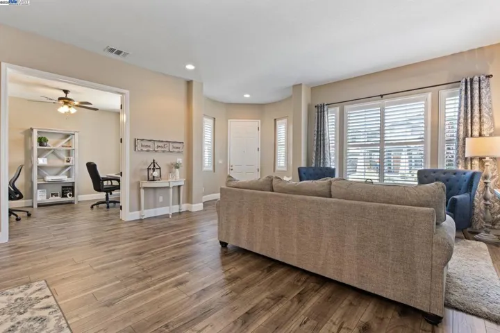 TONS of updates at a great value! Pride of ownership shines throughout this well-maintained home tucked behind the gates in The Lakes. With generous square footage, this home offers 4 bedrooms (2 suites) plus a den, plus a huge loft. This home is ideal for multi-generational living or anyone needing plenty of space. Downstairs features stylish plank style laminate flooring, plush carpet adds comfort upstairs. The kitchen boasts granite counters, stainless appliances, island, large walk-in pantry, and abundant cabinet space. Neutral two-tone paint and upgraded baseboards give the home an updated, cohesive look. Upstairs, the junior suite can provide a private retreat for guests. The oversized loft is a standout feature and is complete with a home theatre experience, a wet bar, and a beverage fridge – perfect for entertaining or relaxing. The expansive primary suite is filled with natural light and includes an en-suite bath with a jetted tub, stall shower, dual sinks, a vanity, and two walk-in closets. Outside, enjoy a beautifully landscaped backyard – ideal for hosting or unwinding. The 3-car garage includes a professionally finished flex space in the tandem area ideal for a hobby room or more storage. This home has been thoughtfully updated for comfort and style.