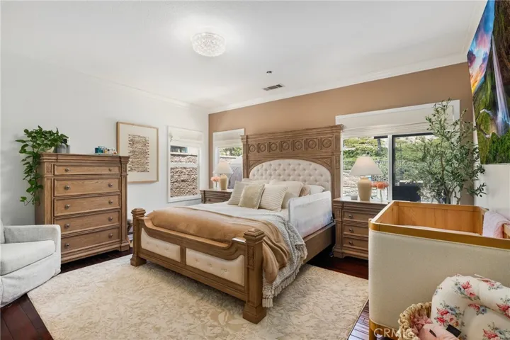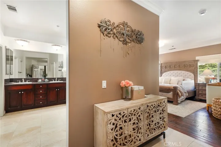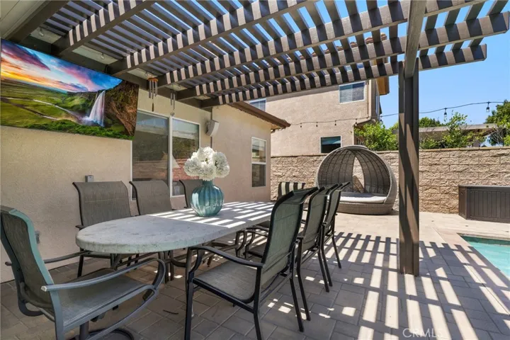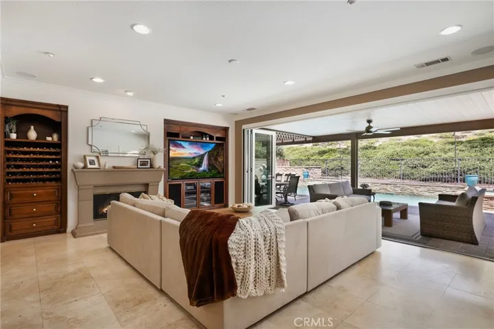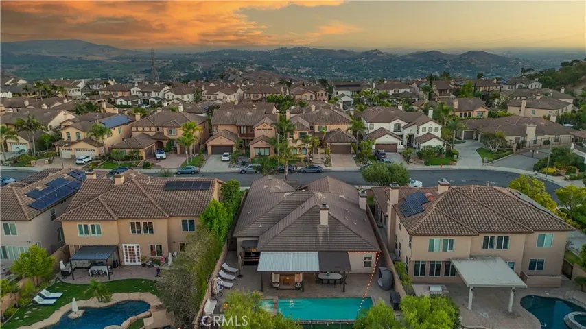 Gorgeous SINGLE-STORY luxury estate with a pool, perfectly situated on a cut-de-sac in one of the area’s best locations, on a premium oversized lot in the scenic hills of Serrano Heights. You’ll love coming home to this stunning BELLAGIO model, featuring over $400,000 in high-end upgrades that offer the ultimate in style and comfort. Step into the front courtyard, where a charming fountain sets the tone and invites you into a beautifully finished home filled with refined finishes and a lifestyle thoughtfully crafted to capture your heart and imagination. This 3-BR/2.5-BA home includes a custom primary suite where the original fourth bedroom was combined with the third to create an expansive suite retreat, complete with dual walk-in closets and a beautifully remodeled en-suite bath—easily converted back to a four-bedroom. The gorgeous formal living and dining rooms, complete with a butler’s pantry, offer an elegant setting for everything from intimate gatherings to lavish celebrations. The family room boasts custom built-ins, a fireplace, surround sound and a striking wall of folding glass doors that highlight incredible backyard views. The show-stopping chef’s kitchen is a masterpiece in itself—equipped with Thermador stainless appliances, built-in refrigerator and wine cellar, gleaming granite counters with stone backsplash, oversized island with ice machine, walk-in pantry and breakfast nook. The luxurious master suite with double-doors, a custom walk-in closet and a spa-inspired bath featuring a jetted soaking tub, stone shower and dual vanities-an ideal space to relax and unwind. And then there’s the backyard—a spectacular outdoor paradise that must be seen to be believed. Nestled on a prized oversized lot, enjoy a resort-inspired backyard with a newly resurfaced saltwater pool, elevated spa and soothing waterfall feature. The beautifully landscaped backyard is an entertainer’s dream space offering the ideal setting for outdoor dining beneath a custom-built Alumawood patio cover, built-in BBQ, fire pit and elegant paver flooring-all designed for intimate evenings or lively gatherings. Luxury extras include wide-plank wood & natural stone flooring, plantation shutters, electric window shades, crown molding, recessed lighting, fire sprinklers, newer pool equipment and a finished 3-car garage complete with built-in cabinetry and a custom stone-accented driveway. An extraordinary opportunity to own a standout property in Serrano Heights! Truly a must-see.