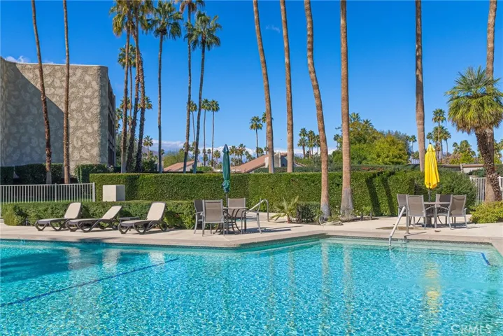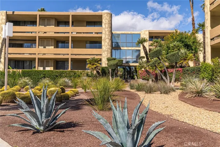 Step through double doors into a spacious two-bedroom residence at The Diplomat in desirable South Palm Springs. Floor-to-ceiling windows throughout frame views of surrounding mountains and palms, creating a bright and inviting atmosphere. The elongated galley kitchen features dual French-door stainless refrigerators, ample cabinetry, and a convenient built-in office area. The mirrored wet bar opens to a generous living and dining space with upgraded lighting that enhances the warm evening ambiance. The primary suite features double sinks, a walk-in closet, another slider closet, and views! A second bedroom and adjacent three-quarter bath provide flexibility for guests or a home office. Enjoy the convenience of secure underground parking with elevator access, just steps from your front door. The luxury condominiums—developed by Robert Grundt—stood out along Highway 111 between La Reina and Farrell Drives with their unusually attractive sculptural elevations, generous landscaped open space, and today form The Diplomat, a community offering a resort-style pool, spa, and beautifully manicured grounds in a highly walkable South Palm Springs location close to shopping, dining, and recreation.