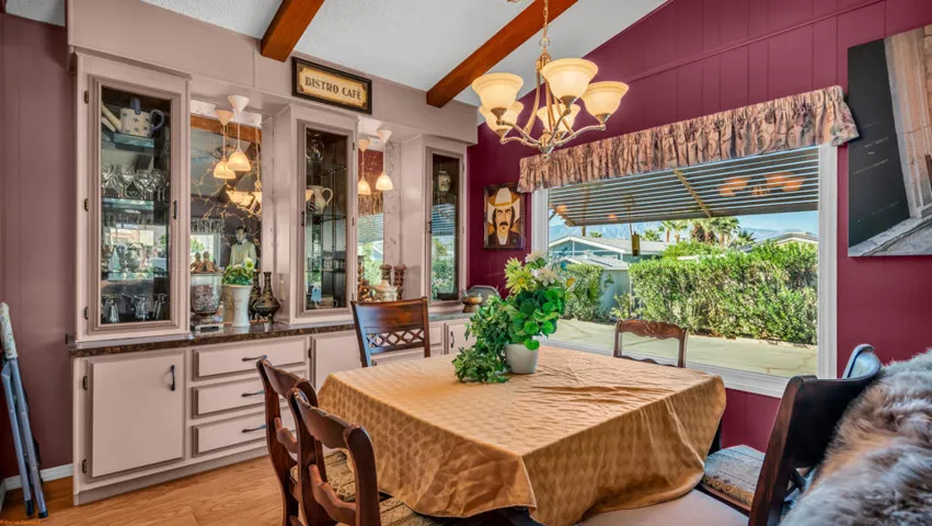 A MUST SEE! BEST VALUE IN THE COMMUNITY! FINANCING AVAILABLE!Discover this spacious 1,440 sq. ft. 2-bedroom, 2-bath home, offering unbeatable value per square foot! This home exudes character and charm, with plenty of room to make it your own. Enjoy an open, light-filled floor plan featuring updated cabinetry, counters, and lighting, plus energy-efficient dual-pane windows and two skylights that fill the home with natural light. The living room showcases stunning mountain views, while the kitchen flows seamlessly into the dining area–ideal for entertaining.The home comes partially furnished with appliances, making it easy to settle in and enjoy. Certain art and furnishings may be negotiable. Step outside and pick fresh oranges and grapefruits from your own trees, or take advantage of the powered workshop shed for hobbies or storage.Located just minutes from Downtown Palm Springs, the low-HOA 55+ community of Joshua Springs offers two natural mineral-water spas, a heated pool, pickel ball, and a new dog park. HOA dues include land tax, water, trash, sewer, cable, and internet–a rare combination of value and convenience.Experience true pride of ownership and resort-style living in one of Desert Hot Springs’ most sought-after resident-owned communities.