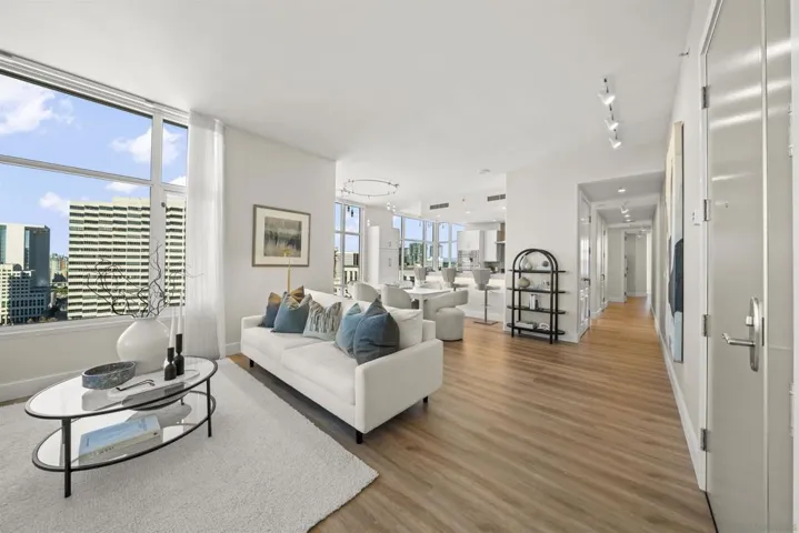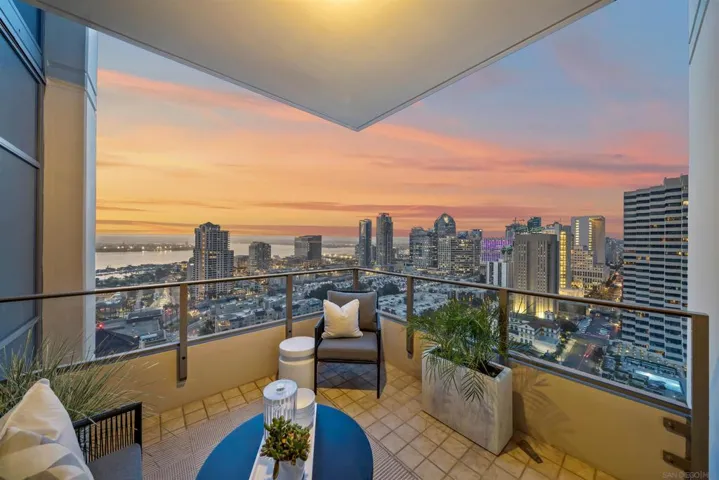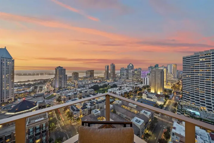 Step into luxury with this impeccably remodeled 2BR/2.5BA 23rd floor residence offering expansive West, North & East facing views! The grandeur of the space is accentuated by 10.5 ft ceilings + floor-to-ceiling windows, complemented by two private balconies perfect for soaking in San Diego’s breathtaking sunsets, watching ships sail by, and admiring the views of Coronado Island and city lights. This residence has been recently remodeled with extensive upgrades including updated flooring throughout, modern kitchen cabinetry, Caesarstone countertops, state-of-the-art kitchen appliances + washer/dryer, California Closet built-ins, upgraded electrical + lighting, and more! Additionally, both bedrooms feature en-suite baths that have been fully remodeled, and there’s a separate powder room for guests. Moments from Seaport Village, The Rady Shell, Gaslamp District and Petco Park, Pinnacle offers white-glove concierge service, a world-class gym, steam and sauna facilities, a guest suite, a stylish lounge, a 95 ft lap pool + spa & more. Residence #2303 also offers two underground parking spaces and a storage unit. This home epitomizes sophisticated urban living, with every detail thoughtfully considered and upgraded.