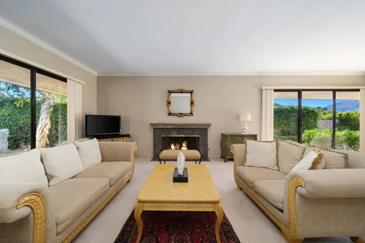 Discover this charming three bedroom two and 3/4 bathroom single family home at the Springs Country Club in Rancho Mirage. Enjoy breathtaking mountain views right across the fairway from a very large outdoor patio. This property is a blank canvas awaiting your personal touch and vision. With remodeling it could transform into your dream residence. Experience the beauty and tranquility of the desert lifestyle in this exceptional close to the clubhouse location. Unobstructed mountain views rarely are better than these.Do not miss this opportunity to create your perfect home.New air conditioner installed in June, 2025.