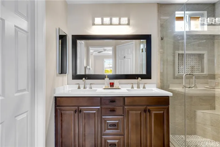 This modern 3-bedroom Detached Residence features a large private wrap-around yard, custom cabinets in the fully renovated kitchen, impeccably crafted fireplace surround & mantle in the living room, and renovated bathrooms. All living space is located on the main level, in what is the 2nd largest model in this neighborhood, creating a seamless flow from the kitchen, living, and dining areas – to the spacious backyard. The fully remodeled kitchen features bright white custom cabinetry with sophisticated drawer and cabinet hardware, quartz countertops and backsplash, along with all stainless steel appliances, range hood and an extra-large single-basin sink. Upstairs you’ll find 3 bedrooms, a laundry room and 2 remodeled bathrooms, along with a loft featuring two built-in desks, providing a ready-made home office or study space. The spacious master bedroom includes a walk-in closet with custom fit dresser drawers, and a remodeled bathroom that matches the secondary upstairs bathroom which also features dual vanities. The backyard has plenty of seating and space to BBQ, play and entertain, with no neighbors behind. Enjoy the unbeatable location—walking distance to award-winning schools, local dining, shopping, community pools, parks, and playgrounds. Home features include smart thermostat, EV-Charger, and filtration water system at kitchen sink. Additional home improvements include a whole house repipe, plantation shutters throughout most of the home, ceramic flooring downstairs and engineered wood floor upstairs. Experience the friendly charm and everyday convenience that make Ladera Ranch one of Orange County’s most sought-after communities. HOA Fees include: front of home landscaping maintenance and high speed internet.