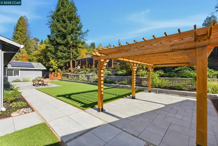 In one of Danville’s most sought-after neighborhoods, this beautifully refreshed single-story home with an attached ADU offers the ideal combination of comfort, flexibility, and modern style. With 2,287 square feet of total living space, the main home features 3 bedrooms and 2 full baths, while the attached 2-bedroom, 1-bath ADU (720 sqft) includes its own full kitchen and family room—perfect for guests, extended family, or rental income. Step inside to discover new engineered hardwood flooring throughout, fresh interior and exterior paint, and stylishly updated kitchen and baths that bring contemporary elegance to every room. The bright, open layout flows seamlessly to expansive outdoor spaces designed for year-round living and entertaining. The private ADU, with its own entrance, features a spacious living room, full kitchen, remodeled bath, two generous bedrooms, laundry room, new flooring, its own HVAC, and fenced backyard. Situated on a corner lot, the property showcases Yardzen-designed landscaping with premium turf, a large patio, and a beautiful gazebo. A fully paid solar system powers both homes. Located within Danville’s top-rated schools and close to parks, trails, shopping, and dining, this move-in-ready gem captures the essence of modern California living.