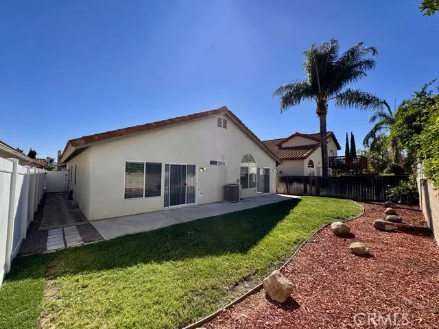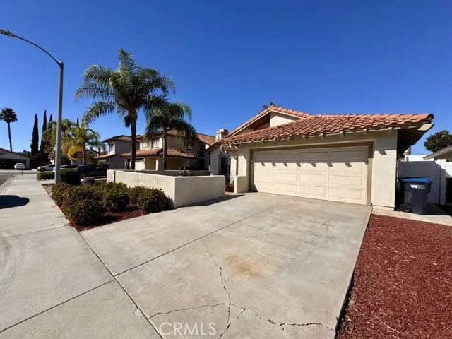 This lovely home sits on a quiet street and features low-maintenance landscaping, a spacious two car garage, and a large front patio perfect for enjoying the outdoors. Inside, you’ll find a bright and inviting interior with vaulted ceilings, tile flooring throughout, and a neutral paint scheme that enhances the wonderful layout. The living room offers a cozy fireplace, creating a warm and welcoming atmosphere. Adjacent to the living room is the kitchen, which includes tile countertops, white cabinetry, stainless steel appliances, and opens to a comfortable dining area. Down the hallway are all three bedrooms and two bathrooms. The primary suite is generously sized, offering plenty of natural light, private access to the backyard, and an ensuite bathroom with dual sinks, a shower-tub combination, and a walk-in closet. Laundry is conveniently located in the garage and includes a washer and dryer. The backyard is perfect for relaxing or entertaining, featuring an open patio and grassy area ready for your enjoyment. This home is ideally located near schools, parks, hospitals, freeway access (215), shopping, dining, and more. Schedule a showing today and make this beautiful Murrieta home yours!