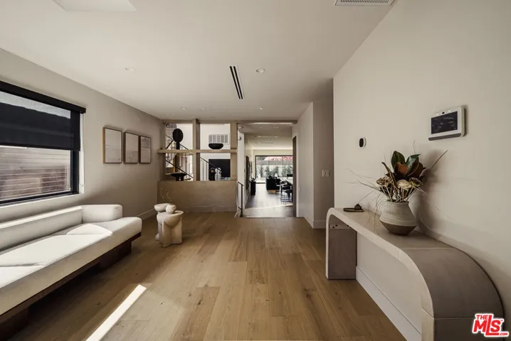 Experience modern luxury in this fully reimagined, 3-bedroom, 3-bath villa nestled in the heart of coveted West LA. Beyond the striking front entry with its custom metal door, an open living area seamlessly connects to the designer kitchen and two spacious ensuite bedrooms on the main level. A built-in wine display elegantly anchors the space under the staircase, adding a refined touch – the main living area flows effortlessly into a firesided family room framed by expansive Fleetwood glass doors that open to a private, resort-style backyard complete with an outdoor kitchen, pool & spa, and fire pit, all surrounded by mature ficus for ultimate seclusion. Up the sunlit staircase awaits the primary suite, a tranquil retreat featuring a generous walk-in closet, spa-inspired bath, and a sprawling west-facing deck perfect for enjoying the afternoon sun and evening breezes – tailored perfectly and fully furnished for the most discerning buyers.