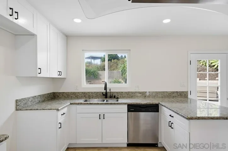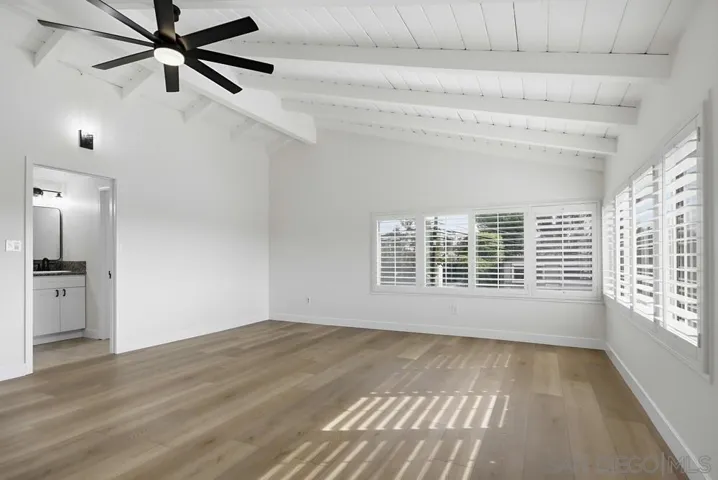 La Mesa Gem! This beautifully renovated home sits on a large, private lot and offers an exceptional blend of modern comfort and timeless style. Equipped with solar and a soft water system, this property features a sparkling pool, outdoor gas fire pit, and ample private parking. Inside, enjoy a thoughtfully remodeled interior showcasing new LVP flooring and baseboards, fresh interior and exterior paint, upgraded bathrooms with new fixtures, and recessed lighting throughout. The kitchen has been fully updated with granite countertops, stainless steel appliances, and upgraded cabinetry. The backyard oasis is perfect for entertaining, complete with a refinished pool, newly built brick gas fire pit, and mature landscaping. Additional exterior improvements include new gutters, freshly painted fencing, re-stained concrete surfaces, and a fully refurbished pool finish. This home features two primary suites, including an expansive upstairs retreat with exposed wood beams, walk-in closet, dual sinks, and a private thermostat. A true turnkey property, this La Mesa residence delivers style, efficiency, and comfort throughout.