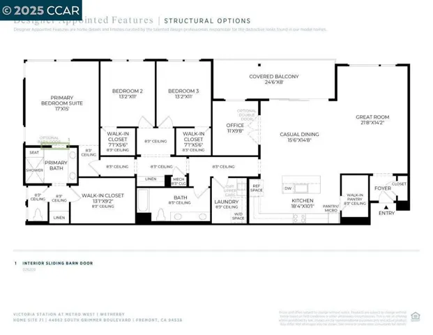 Move-in Ready! Victoria Station at Metro West brings new luxury condos and convenience to your doorstep with access to neighborhood retail, community park and clubhouse. Open-concept, great room and casual dining area are adjacent to a sizable office and access to outdoor covered balcony. Kitchen highlighted by a large center island, breakfast bar, plenty of counter and cabinet space, KitchenAid stainless steel appliances, and ample walk-in pantry. Expansive primary bedroom suite is complemented by dual walk-in closets, designer sliding barn door to the primary bath complete with a dual-sink vanity, a spa-like shower with seat. Laundry room with Whirlpool front load washer and dryer. This intimate 15 home condominium has a roof top deck with bar-b-que, fire pit, and seating area to enjoy with family and friends. Exclusive to this community the comforts of a movie screening room, dog washing station, shared office work space, and entertainment kitchen area. Toll Brothers Newest Community in the sought after area of Fremont’s Innovation District!! Great commute location with easy access to 680 and 880 as well as walking distance to BART. Close to the ‘High Tech’ industry and great schools. ( photos not of actual home, for marketing only)