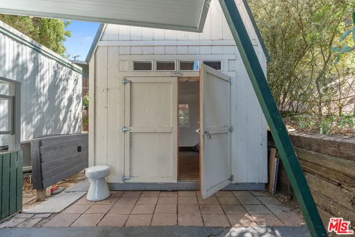This light-filled, sanctuary-like property blends rustic character with modern comfort in one of Agoura Hills’ most desirable and family-friendly communities, the Blue Dude Mobile Home Park. With only 13 units in the park, residents enjoy a secluded environment surrounded by nature and scenic hiking trails (and close to Malibu’s iconic beaches), but with plenty of restaurants, shops and conveniences located just minutes away. The primary space features two bedrooms, each with its own entrance leading out to the idyllic yard, and a spacious eat-in kitchen with open shelving, natural wood accents, and generous counter space. The welcoming living area offers warm wood ceilings, textured walls, and built-ins. The private, tree-shaded outdoor space is beautiful and expansive, with plenty of different areas for cooking, entertaining, and lounging. Two nicely-sized converted bonus structures on the property (one with a cool lofted bed area) offer extra flexibility and are perfect for usage as guest sleeping quarters, a creative studio, or a home office. An absolutely one-of-a-kind find for beach and nature lovers, this peaceful property is a chance to create your own private paradise, customized to your singular needs. Blue Dude homes don’t come on the market very often, so don’t miss this rare opportunity to become a part of a truly special, unique community.
