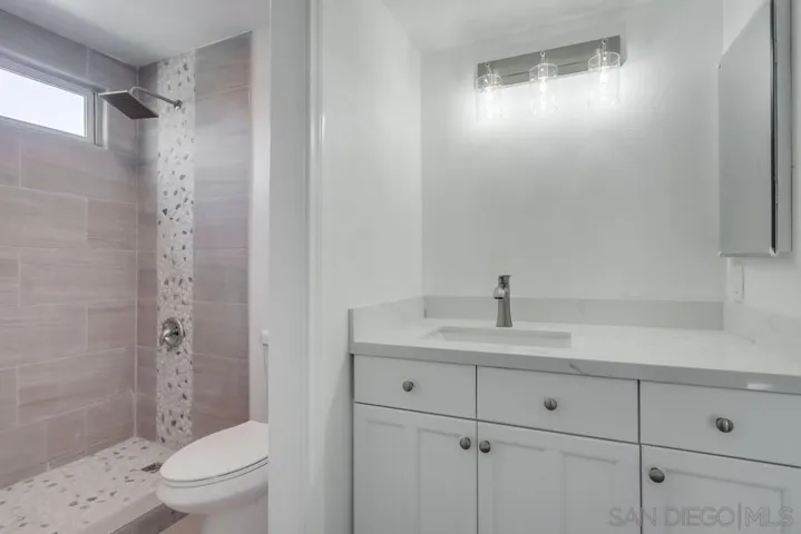 VA Approved! Move in ready! Light & Bright! Small complex. Newly remodeled top-floor corner unit. Vinyl wood flooring throughout, New kitchen cabinets, quartz countertops, stainless steel appliances, newer windows, recessed lighting, upgraded bathrooms with tiled showers, and ceiling fans. Large deck that extends the entire length of the unit at dinning/living room area. One-car garage with additional parking. Centrally located, easy freeway access, 15 minutes from downtown, SDSU, USD, and beaches. Centrally located, 15 minutes from the beach, USD, SDSU, stores, and restaurants.