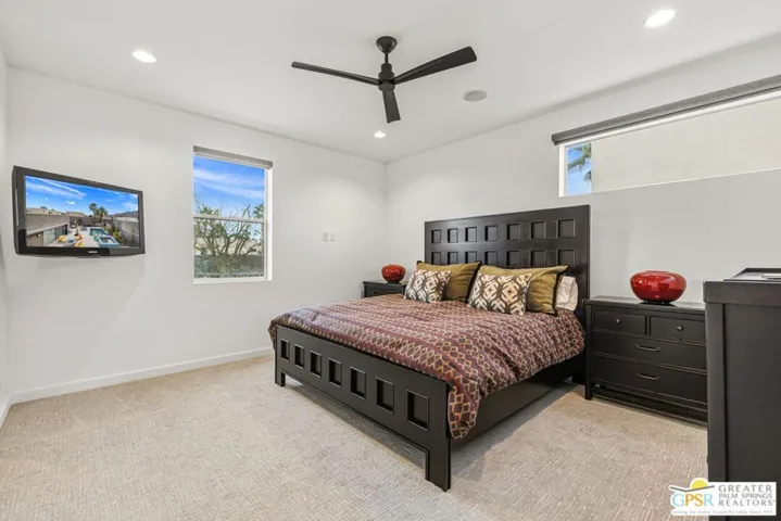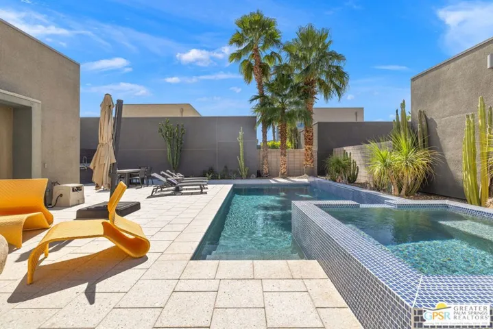 Morrison MAGIC in full effect and being sold turnkey FURNISHED. Modern design, exceptional outdoor living, and a dramatic San Jacinto Mountain backdrop all come together at this ultra private residence in The Morrison. The vibe is crisp, clean, and effortless from the moment you enter, with indoor outdoor flow that places the pool and mountain views front and center. The pool and spa were refreshed in 2026 with gorgeous blue tile that makes a striking first impression, delivering instant wow factor alongside the spa to pool waterfall, generous sunning areas, and a modern stone fire pit that adds another focal point. All of it is framed by lush desert landscaping and complete privacy, creating an outdoor environment made for lingering, lounging, and entertaining in style. Inside, the modern aesthetic continues with tall ceilings, sleek finishes, and an easy open layout. The sought after Plan 3 design offers three bedrooms and three baths including a convenient first level bedroom and two ensuite bedrooms upstairs. Quality upgrades are found throughout, enhancing both style and function. Be it full time or seasonal, there is so much to love. Fee Land, you own it. The Morrison is gated, beautifully modern, and moments from both downtown and uptown. A rare combination of design, setting, and pure desert magic.