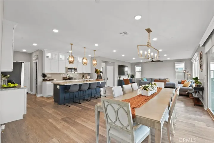 This beautiful single-family home offers the perfect blend of comfort, style, and convenience. This is the largest floor plan home called Horizon at Atwell Community. Featuring spacious rooms, modern amenities and a welcoming atmosphere. Flooring with luxury vinyl throughout main floors, hallways & stairways with upgraded handrails and light fixtures. Living space-open-concept living and dining areas with plenty of natural light, and recessed lights, then to Formal Dining area, special folding sliding doors when you party you can entertain open it with extended to outside covered patio. Remote control shades at sliding doors. Next to it modern Kitchen, with large center island with quartz finished countertop, equipped with stainless steel appliances. Then the White Kitchen Cabinets with light fixtures inside the upper portion. Walk in Pantry plenty of room. Then next to it bathroom and one bedroom for guest. Walk upstairs where you will find the spacious primary bedroom, separate bathrooms, walk in closet for all your collection. Then to Loft Area/Family Room, another place for TV Theater or just listening to your favorite music. Landscaped backyard with a patio, perfect for entertaining or relaxing with low maintenance artificial turf, with paver stones on the sides with wrought iron fence directly behind the house with unobstructed views of the mountain, community lake, walking trials. Another covered patio on the side. You are few steps to the community pool with spa, BBQ area and parks. Hiking trails and biking trails. There’s Solar Panels on the house which is package in with the purchase of this house. Situated in a quiet, family friendly neighborhood, this home is conveniently close to parks, shopping centers and medical centers. Enjoy the sense of community while being just minutes away from all the amenities you need. Seller upgrades approximately over $100K on this house so its move in ready!