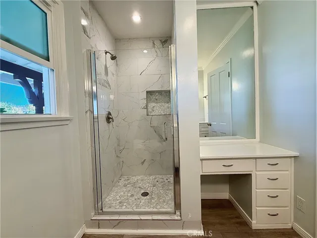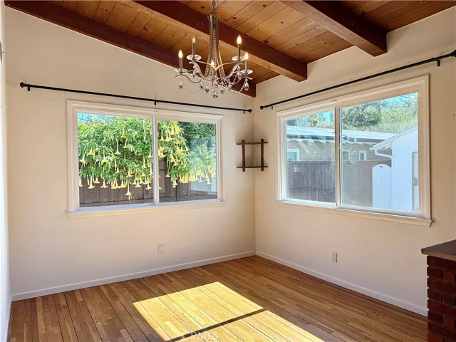 Through a beautifully landscaped garden, on the quietest part of Burbank Boulevard, we are proud to offer this mid-century estate for lease. The common living spaces feature beautiful wood floors and soaring ceilings with gorgeous beams, every corner suffused with natural light. The freshly updated kitchen features stainless steel appliances, gas range, and a lovely eat-in dining nook. The first oversized bedroom grants access to the private backyard with high ceilings and skylight, and the second bedroom features gorgeous built-ins surrounding the bay window with a bench overlooking the lush front yard. Your primary bedroom comes with three large closets, your own personal air conditioning if you don’t need to cool the rest of the home, direct backyard access, and an attached bathroom with a spacious soaking tub and luxurious shower. The backyard oasis includes a mature avocado tree, complete privacy, and a two-car garage with laundry room attached. Come discover the perfect balance of home, location, and peace in Woodland Hills.