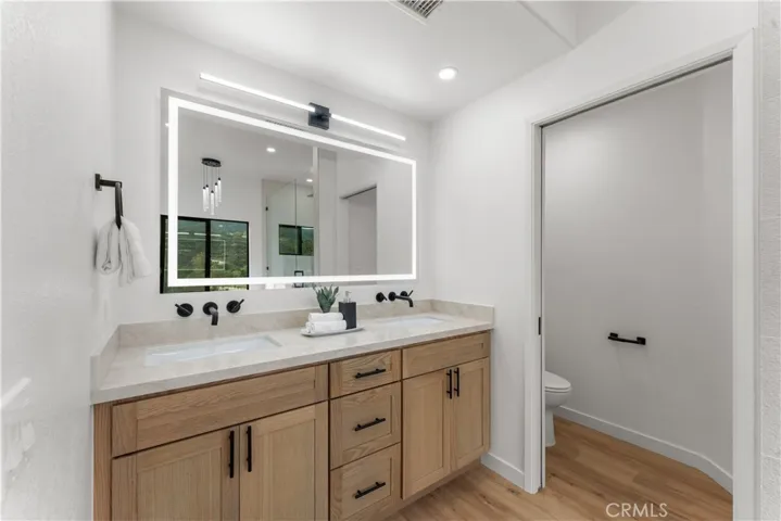 Step into this beautifully renovated San Marcos home, where modern design and everyday comfort come together effortlessly. Nestled on a peaceful cul-de-sac within walking distance to Discovery Lake and scenic trails, this move-in-ready residence offers the perfect blend of function, style, and convenience. Every detail has been thoughtfully updated with new flooring, fresh paint throughout, and brand-new cabinetry that adds a modern touch to every room. The open kitchen showcases elegant quartz countertops, stainless steel appliances including a stove, dishwasher, refrigerator, and microwave, plus white washer and dryer units that complete the home’s clean and cohesive look. Recessed lighting enhances the kitchen, bathrooms, and primary suite, where a spa-inspired bathroom creates a private retreat. The home features a new roof, furnace, and air conditioning system, as well as updated black windows that invite in natural light. Ceiling fans in each bedroom add year-round comfort. Step outside to a spacious backyard with a raised deck, the perfect spot to enjoy panoramic mountain and valley views or entertain guests. A three-car garage and additional street parking offer ample space for vehicles and visitors. With no HOA and a prime location near Cal State San Marcos, Discovery Lake, and nearby hospitals, this property offers modern living, breathtaking views, and exceptional value in one of North County’s most desirable neighborhoods.