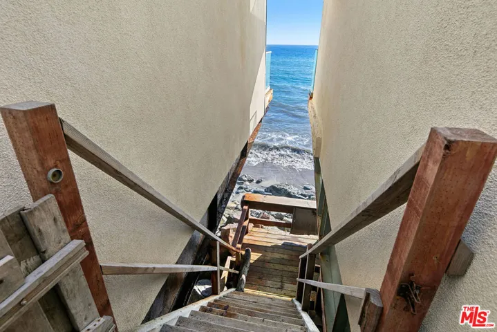 This residence sits directly on Big Rock Beach, perfectly positioned just minutes from Santa Monica and central Malibu. A rare offering on leased land at $2,100 per month (3% annual increase) with 38 years remaining on the lease. Own the whole building, the adjacent home is for sale as well! This coastal sanctuary captures unobstructed, panoramic views of the Pacific Ocean, Catalina Island, and the Queen’s Necklace from sunrise to sunset. The home features two bedrooms plus an open den or 3rd bedroom area, and 2.5 bathrooms, all thoughtfully designed for both comfort and elegance. The open-concept kitchen and dining area flow into a sunlit living room with a balcony perched over the sea, offering a front-row seat to the rhythm of the waves. Upstairs, the romantic primary suite includes an oceanfront balcony and spa-style en-suite bath, while the open loft/family area leads to a private guest suite with its own bathroom and the laundry is in a closet upstairs. Multiple outdoor deck spaces create an effortless connection to the coast, from an ocean-facing deck ideal for lounging to a private subterranean patio made for al fresco dining beside the surf. A few doors away there is access to a picturesque pocket beach and cove, an idyllic escape for sunbathing, swimming, or quiet walks by the water at low tide. There is an attached 2 car garage.