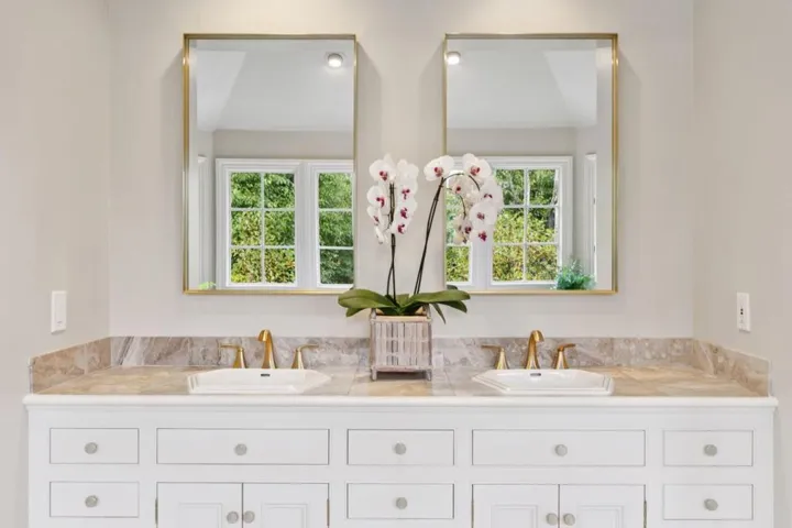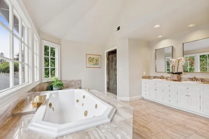 COURTYARD MANOR AT BURLINGAME PARK: ONE OF BURLINGAME’S PRETTIEST HOMES AT THE #1 ADDRESS IN TOWN! Magical English Country Retreat Comes to Life…expanded and renovated with Wow Factor elegance inside and out: Begin with heartwarming curb appeal and a signature courtyard. Huge room sizes, classic character with modern livability. Two-story entry. Indoor/Outdoor flow with courtyard, brick terraces, lavish private gardens, and garden pavilion. Upstairs architectural drama sweeps you away with towering ceilings up to 17 ft. and an unrivaled luxury master suite with fireplace, private balcony, and sumptuous full-size en suite bath. | Four woodburning fireplaces | Cozy Family Room off kitchen has potential as 4th bed including adjacent full bath | Don’t miss the formal rose garden terrace | Incredible privacy and the feeling of your own tucked-away European retreat | Walk to downtown Burlingame Avenue in minutes, shouldered by high value estates reaching $17,000,000….Timeless!
