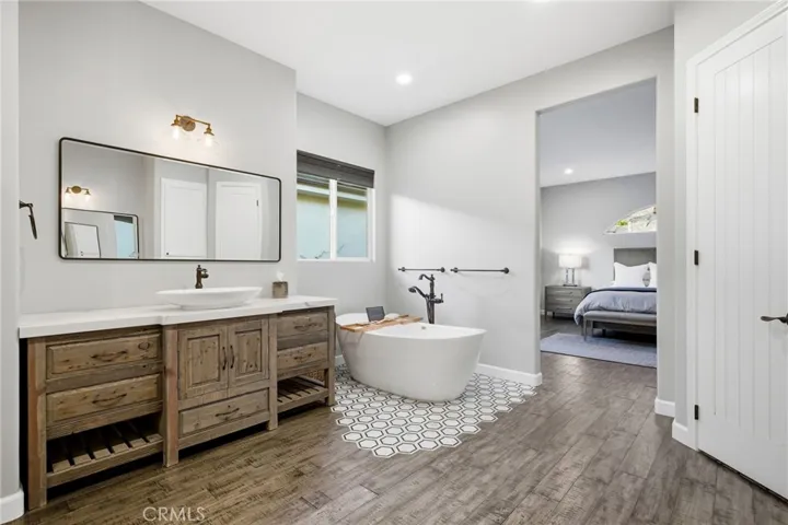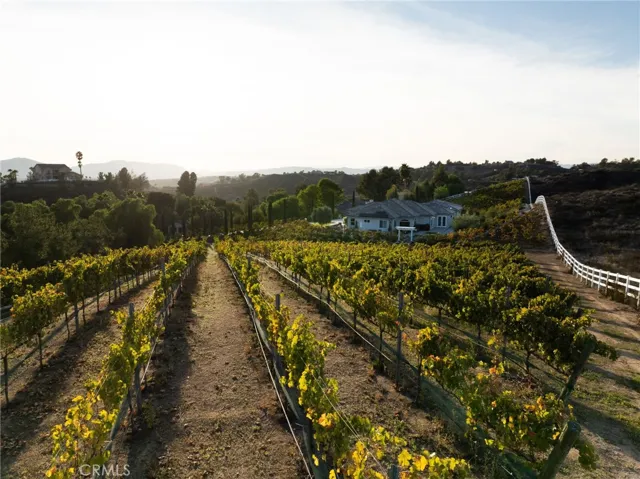 Crafted with a keen eye for detail, this newer-construction custom estate combines high-end finishes, quality craftsmanship, and clean modern lines with a warm, practical feel—all set on 2.5 usable acres in the heart of Temecula’s sought-after Wine Country. The property features a 3-bedroom, 2-bath main residence and a separate 2-bedroom, 1.5-bath guest house, both showcasing a cohesive contemporary design with a smooth Santa Barbara-style stucco exterior finish for a clean, upscale look. Inside the main home, an open-concept layout creates effortless flow between the living, dining, and kitchen areas—ideal for entertaining and everyday living. The designer gourmet kitchen offers high-end finishes, a large center island, and generous storage, all styled with a refined, modern aesthetic. Thoughtful interior design details continue throughout, with curated fixtures, quality materials, and elevated yet comfortable spaces that feel polished without being sterile. The separate guest house includes 2 bedrooms, 1 bathroom, and a full kitchen, making it perfect for multi-generational living, extended stays, or additional income opportunities as an owner-hosted short-term rental in this popular Wine Country destination (buyer to verify STR requirements).Recently installed solar (2025) with Tesla Powerwall enhances efficiency and energy independence. The fully fenced property with privacy gate includes approximately 2.5 acres of land with an organic, income-producing vineyard of mature, healthy vines—ideal for an aspiring or seasoned vintner. For those who simply love the ambiance of the vines without the upkeep, the vineyard can be professionally managed and harvested by a third party, allowing the owner to enjoy the beauty and lifestyle of Wine Country without the maintenance. Temecula Wine Country living at its finest—modern design, custom construction, income potential, and a turnkey vineyard experience all in one exceptional estate.