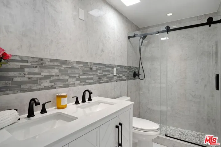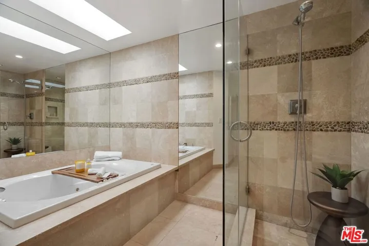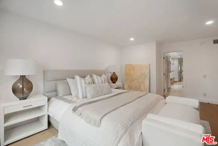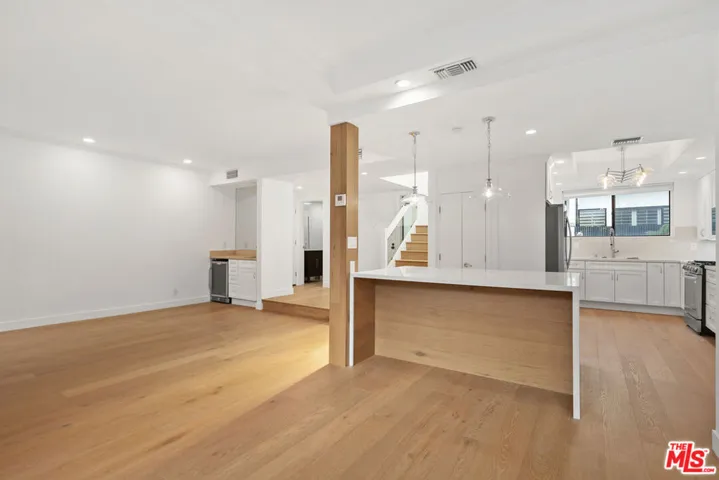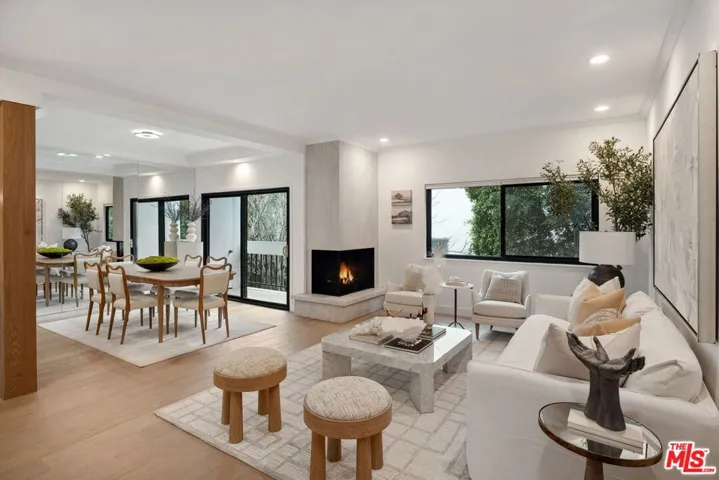 Behind private gates in one of Beverly Hills’ most desirable locations, this newly remodeled contemporary townhome offers modern luxury, privacy, and exceptional convenience. Fully updated in 2025, the home features an open-concept living area with wide-plank oak floors, a stone fireplace, and a custom wet bar. The gourmet kitchen showcases a waterfall quartz island, designer cabinetry, and premium appliances.Upstairs, the bright primary suite includes a walk-in closet and a spa-inspired bathroom with Jacuzzi tub, oversized shower, and double vanity. Three additional spacious bedrooms offer flexibility for families, guests, or home offices.Rare amenities include three gated, covered parking spaces with direct unit access and an EV charger, plus access to a resort-style pool and spa. Located within the Beverly Hills Unified School District and moments from dining, shopping, La Cienega Park, and Cedars-Sinai. Turnkey luxury living in a prime Beverly Hills location.