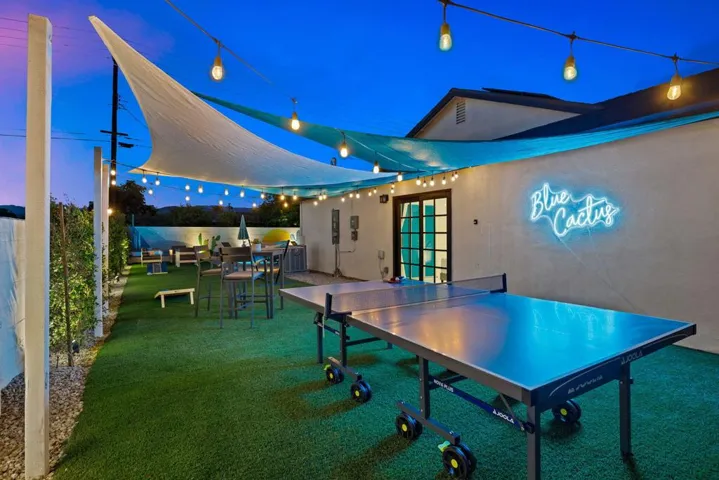 This Short Term Rental Property has every possible upgrade you could want to entertain guests as an Airbnb or vacation home! Welcome to the ”Blue Cactus House”, where you’ll understand it’s name right as you approach the front door. This 5 bedroom, 3 bathroom home is situated on a large corner lot, ideal for guests enjoying themselves into the night. Every detail in the home has been designed to provide the most memorable Airbnb or VRBO experience, whether it’s the colorful wall murals, the waterfall island in the open floorplan kitchen, or the Junior ADU (JADU) with separate kitchen and sleeping space. And that’s not even the best part, because wait ’til you see the backyard. The recently built and newly plastered pool is framed perfectly by a state-of-the-art entertainment system and built-in grill space. Soak up the stars in the hot tub or cozy up next to the firepit, the options to enjoy yourself are endless! Property is being sold fully-furnished, turnkey, and has generated over $100k in revenue in the past 24 months, and Coachella is already SOLD OUT for 2026t. Priced to sell quickly, this home is a ‘cash-cow’ and the results speak for themselves.