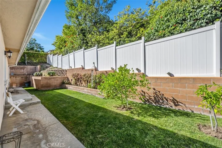 Additional features include a two-car garage with plentiful built-in storage cabinets. The exterior is enhanced by fruit trees in both the front and back yards, as well as vinyl fencing around the property for added privacy.