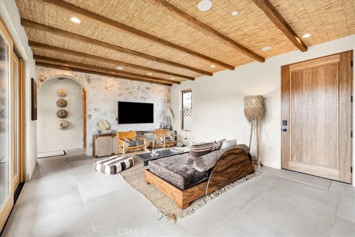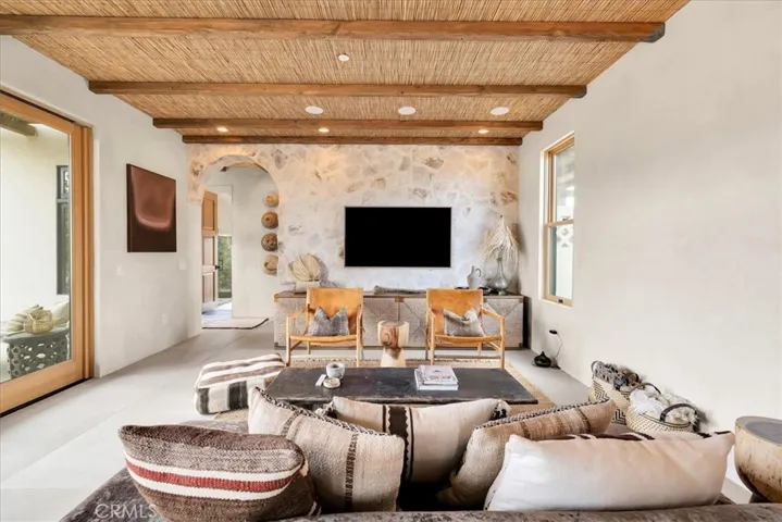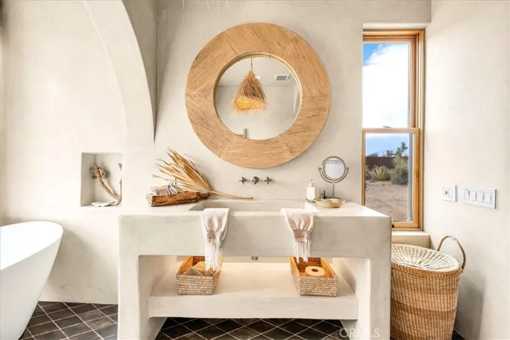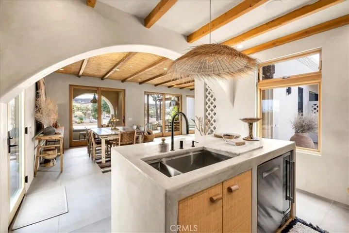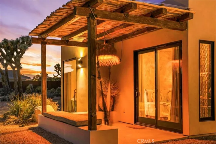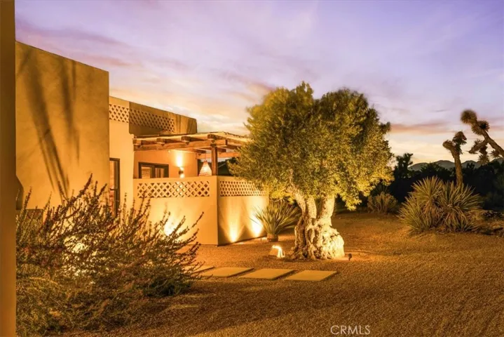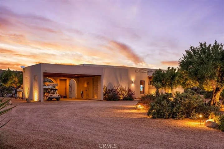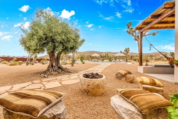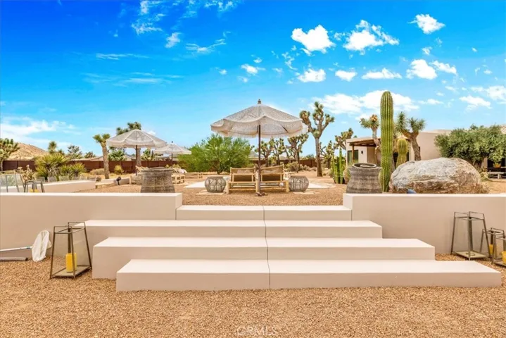 Step into your own private sanctuary in the heart of Yucca Valley—a stunning furnished Moroccan desert-inspired retreat that blends modern luxury with timeless design. This 2-bedroom, 2-bathroom architectural gem spans 1,363 square feet and sits on a serene 2.3-acre lot, offering total privacy and an unmatched desert living experience. From the moment you enter through the electric gate, you’re welcomed into a fully fenced oasis surrounded by native desert landscaping and curated stone walkways. Inside, you’ll find sleek concrete floors, custom stone accents, built-ins, and thoughtfully designed living spaces that open seamlessly to the outdoors. The home features private patios, a tranquil inground heated salt water pool and spa, an outdoor fire pit, and shaded lounging areas—perfect for entertaining or unwinding under the stars. New modern architecture is complemented by mini splits for year-round comfort, while a carport adds function and more outdoor opportunities. This is more than just a home—it’s a destination. Ideal as a luxury vacation getaway, high-end rental, or full-time desert retreat. Don’t miss the chance to own this truly one-of-a-kind property where style, privacy, and natural beauty meet.