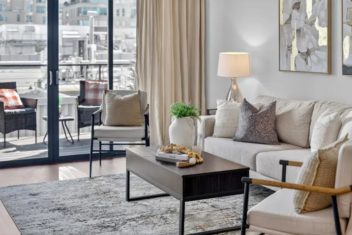 Experience the best of urban living in this impeccably designed, open 1-bedroom, 1.5 bath luxury condo located in one of San Francisco’s most convenient & desirable neighborhoods. Thoughtfully crafted with modern finishes and an open-concept layout, this residence blends style, comfort, and functionality in perfect harmony. Step inside to discover floor-to-ceiling windows, wide-plank hardwood floors, and a chefs kitchen featuring premium stainless steel appliances, sleek cabinetry, and quartz countertops. The spacious living area flows seamlessly to a private balcony ideal for morning coffee or winding down with city views. Additional highlights include in-unit laundry, secure parking, bike storage, Wolf gas range, Liebherr refrigerator, Studio Becker Cabinets, and Google Fiber Internet INCLUDED in the HOA, a BIG roof top deck with views for miles, a large elevator, secure digital building entry, private unit storage, free wine storage, and near by secure garage parking. Perfectly positioned just steps from SF Giants AT&T Park, South Beach, the Embarcadero, & SOMAs finest dining, tech hubs, and cultural attractions, 41 Federal Street combines the energy of the city with the comfort and privacy of refined living. Come see this Secure, private, refined & luxuriously modern condo.