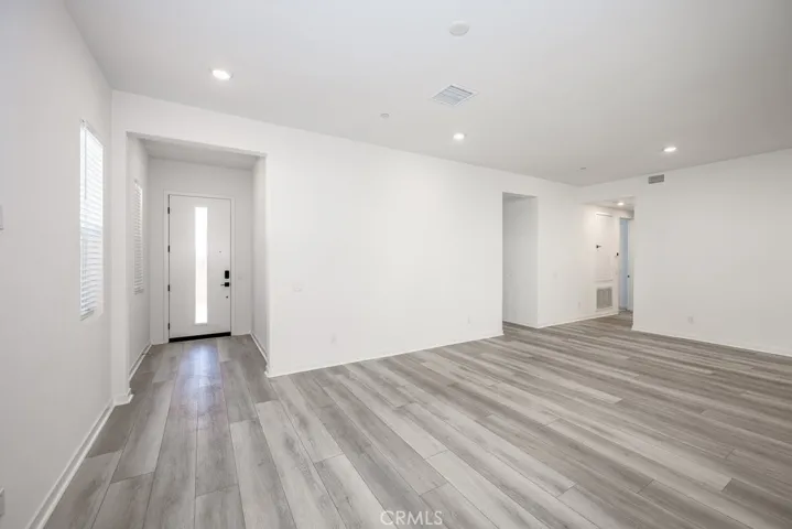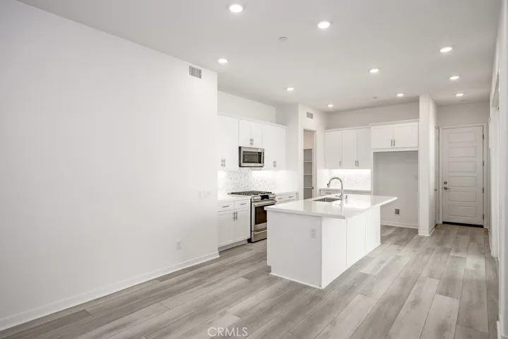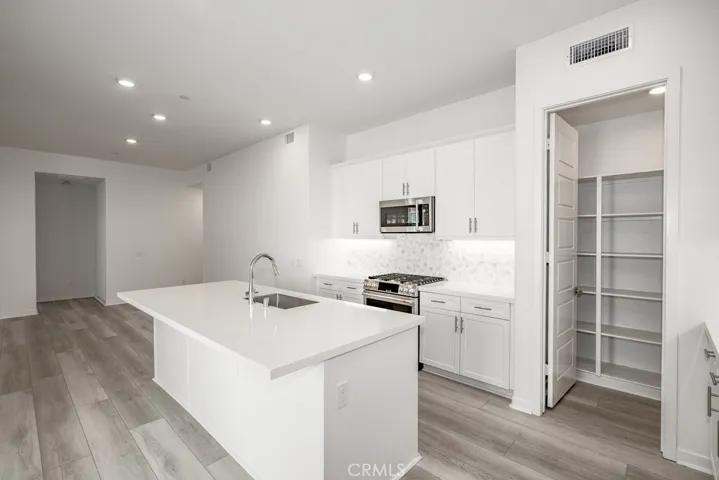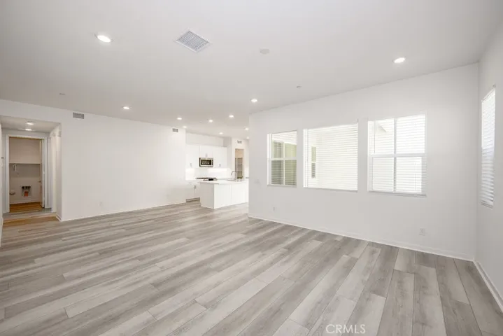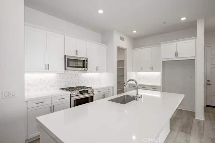 Fantastic Single-Story Home in the Sought-After Rowan Collection at FivePoint Valencia. Welcome to this beautifully appointed, modern 3-bedroom, 2-bath home featuring an open-concept floor plan with high ceilings, large picture windows, luxury vinyl plank flooring, and recessed lighting. The bright and airy living area flows seamlessly into the dining space and gourmet kitchen, showcasing quartz countertops, a designer backsplash, a breakfast bar, white cabinetry with brushed nickel hardware, a walk-in pantry, and stainless-steel appliances. From the kitchen, step through sliding glass doors to a spacious covered patio—perfect for relaxing or entertaining year-round. The primary suite offers plush carpeting, recessed lighting, a generous walk-in closet, and a luxurious en-suite bathroom with dual quartz vanities and a walk-in shower. Two additional bedrooms include ample closet space—one ideal for guests or a home office. The full guest bath also features dual vanities, quartz counters, and a tub/shower combination. Additional highlights include a dedicated laundry room with washer and dryer hookups, an attached two-car garage with an EV charger, and owned solar panels for energy efficiency. Residents of the FivePoint community enjoy resort-style amenities such as multiple pools, spas, cabanas, parks, walking trails, a recreation center, dog park, community garden, and a lively Sunday Farmer’s Market. Conveniently located near shopping, dining, and the 5 Freeway, this exceptional home combines style, comfort, and convenience in one perfect package.