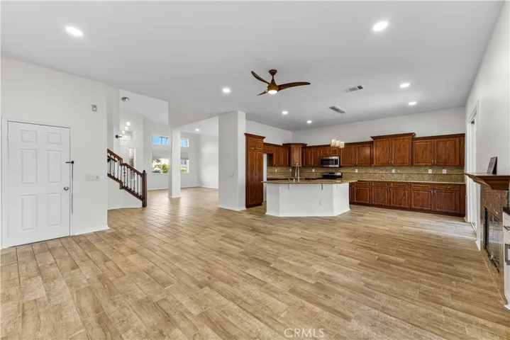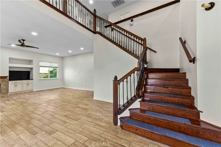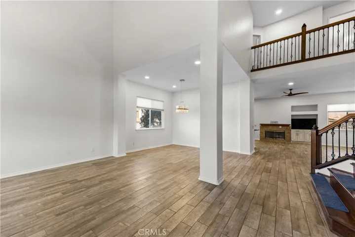 Welcome to this beautifully maintained two-story home in Corona. Offering 5 bedrooms, 3 bathrooms, and a 3-car garage, this residence is filled with natural light and provides generous indoor and outdoor living space, deal for holiday entertaining. Come see the vaulting cathedral ceiling in the living room and the elegant formal dining area. The well-designed kitchen features abundant cabinetry and a large island for cooking and gathering. Nearby, the expansive family room sits adjacent to a main-floor bedroom and full bathroom, making it ideal for guests or multi-generational living. Upstairs, the primary suite includes a walk-in closet, dual sinks, a separate shower, and an oval soaking tub. Across the hall, a sizable loft offers endless versatility for lounging, a media room, or a dual home office. The large backyard showcases fruit trees and ample open space for gardening, entertaining, or exploring the potential for an ADU (buyer to verify). Conveniently located near shopping and community amenities, this home offers a wonderful opportunity in one of Corona’s most sought-after neighborhoods.