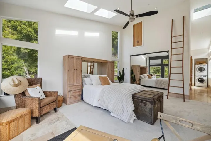The seller is willing to buy down the rate to 5.5%. Experience luxury, space, and versatility in this palatial estate, which is ideal for multi-generational compound living thanks to an ADU and over 10 acres of serene privacy. The main home offers 7 bedrooms and 6 bathrooms, highlighted by soaring 16-foot ceilings and expansive windows that fill the home with beautiful natural light while showcasing breathtaking views of the surrounding landscape. At the heart of the home, the kitchen features a dine-in breakfast bar and generous counter space for preparing a gourmet meal. Adjacent to the kitchen is a formal dining room, the dream for those who love entertaining. Or have guests venture outside to dine al fresco on the expansive deck and explore winding pathways through lush, mature gardens featuring vibrant Japanese Maples, fruit-bearing trees, and blooming crepe myrtle. Car collectors and hobbyists alike will appreciate the designer 3-car garage, complete with sleek oak cabinetry, mirrored storage, and a private bathroom. Ideally located off Bear Creek Road, this estate provides easy access to both charming downtown Boulder Creek and the innovation hubs of Silicon Valley, such as Nvidia, Netflix, Apple, and more.