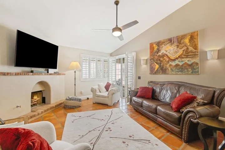 Desert Living is waiting for you in this two-bedroom, three bath detached home. An entertainer’s dream yard on a premium lot creates a private Oasis with a saltwater pool/spa, an outdoor bar, and an impressive Saguaro Cacti framed by distant mountain views! It comes fully furnished and boasts paid off SOLAR in the highly desirable Desert Breezes gated community! This home features 2 Primary Suites each with a private bathroom and a private patio and are ideally located on opposite ends of the home. There is an additional half bathroom just off of the living room for guests. This Mediterranean style home features a spacious and open floorplan with vaulted ceilings, plantation shutters, and gorgeous Saltillo tile floors throughout the main living spaces! The updated kitchen has granite counters, wood cabinetry, stainless steel appliances, and breakfast bar seating area. The kitchen opens to the dining area and flows into the living room with fireplace, and slider to the private yard. The home backs to one of the many greenbelts in the community. An attached 2-Car Garage with EV charger provides easy access and convenience! The seller states most of the year no monthly electric bill and very low in the summer. New pool equipment (2024) and rebuilt A/C (2024) Residents get to enjoy many swimming pools, pickleball, spas, clubhouse area, tennis courts, and greenbelts. LOW HOA’S! Conveniently located not far from shopping, dining, golf, and more! Schedule a private tour today!