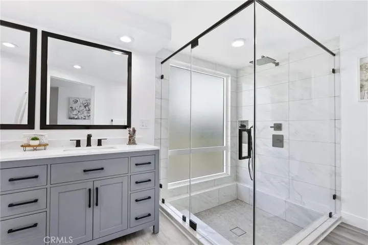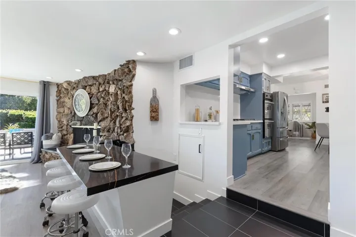 PRICE IMPROVEMENT – RARE FIND – Remodeled and Move-In Ready Northridge Two Story! This stunning residence offers the perfect blend of modern elegance and convenient living with 2 primary bedrooms – one on the main level and one on upper – perfect for multi-generational / extended family living. Boasting a comfortable and flexible 5 bedroom layout with a convertible den that can effortlessly be transformed into a 5th bedroom, along with 4.5 stunning bathrooms, boasting both comfort and style. This home has undergone a comprehensive renovation, leaving no detail overlooked. From the striking kitchen and baths, designer luxury vinyl plank flooring to the upgraded fixtures throughout, every inch of the property exudes a fresh and modern aesthetic. The thoughtfully designed floor plan is bathed in natural light, creating an inviting atmosphere throughout. An elegant living room is the perfect place to unwind by the cozy fireplace, creating a warm and inviting ambiance for gatherings with family and friends and offers a sliding glass door with views to the rear yard. The heart of the home, the kitchen is a chef’s dream come true, featuring stunning quartz countertops, an abundance of cabinet space, quality stainless steel appliances and a breakfast area, the kitchen is as functional as it is stylish. Continue on into the step-down dining area and family room that providing ample space for relaxation and entertainment with wet bar, ½ bath for guest and another sliding glass door that creates that great indoor / outdoor feel. Upstairs you will find the expansive main primary suite with a walk-in closet, a cozy sitting area and a gorgeous private en suite bathroom, complete with dual sinks, modern fixtures and custom tiled shower. Secondary bedrooms are all on the main level and offer great space and functionality. Additional upgrades include fresh paint inside & out, central air & heat, 2 water heaters, upgraded dual-pane windows (2 are still original diamond pane for aesthetic), and completely finished attached 2 car garage. Outside, the relaxing rear yard features a spacious patio with new above ground spa, perfect for relaxing or al fresco dining year-round. Beautiful low maintenance landscaping with automatic drip irrigation system, keyless entry, and Indoor laundry room, are just some of the many highlights in this amazing home. See it today!