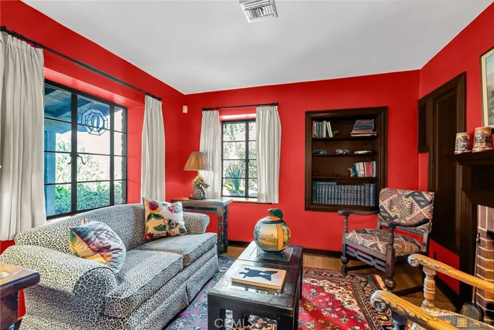 HAWARDEN HILLS- “Old” Hawarden Drive- An enduring piece of Riverside’s Citrus Heritage, the Stewart Malloch House built in 1937 of 12”-16” thick adobe block rests discretely on a bench of the hill surrounded by mature landscaping and Avocado Groves. Malloch, the grandson of William Irving and Great Nephew of Matthew Gage channeled the Architecture of early Riverside in designing this epic sprawling ranch style home. Embracing the efforts of the period’s Architect’s desire to create a regionally contemporary style, exceptional quality was built into this home with materials such as pegged oak hardwood floors, smooth plastered walls and ceilings, Steel divided light casement windows and Mahogany doors and trims molding throughout! Complete interior by renowned and published designer Carleton Varney adheres to the genuine theme of the home with a timeless refined western effect. Every space of this home is an experience, from the welcoming shelter of the massive front porch to the hospitality of the formal living and dining rooms and cozy study; to the spacious bedroom suites, all these spaces containing fireplaces for a total of 6 in the property! The grounds are a delight to the senses with the shade of mature trees over a century in age, manicured lawns, enchanting flower beds, peaceful Koi Pond with waterfall and gazebo, Built-in Bogner Spa off the primary suite and the odor of Citrus Blossoms throughout the year from the many varietals grown in the area. A massive six car garage measuring over 1,200 Square feet as well as the welcoming motor court just inside the privately gated driveway further compliment this truly special property. The property consists of 3 separate legal lots and is to be sold completely intact. The house and surrounding improvements sit on just over 3.1 acres with the adjoining 2 lots covered mostly in Avocado Varietals measure 1.08 and 2.38 acres for a total of 6.56 acres. Offered in pristine condition by the second owners for the first time in over 55 years!