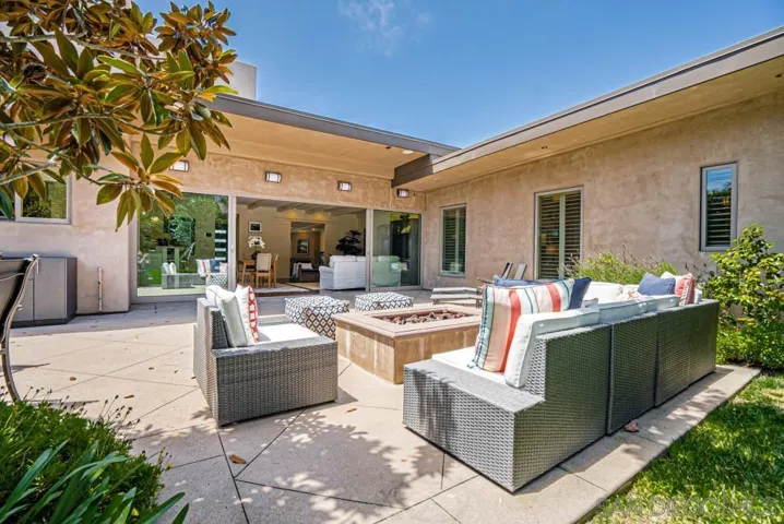 Just moments from the sand, this single-level retreat offers a spacious open floor plan, lush outdoor spaces, and ocean views from the rooftop deck. Step through the gated front yard and into the home’s interior. Directly ahead, a beautifully styled dining area seats four. The fully equipped kitchen features modern appliances and a large island with bar seating for three. To the left, the first of two living areas welcomes you with a plush sofa, TV, and additional seating for lounging or connecting with friends and family. A second living space offers a queen pull-out sofa, cozy fireplace, a second TV, and extra seating. Oversized sliding glass doors span the rear of the home, opening wide to reveal a private backyard retreat surrounded by greenery. Enjoy a second outdoor table for four, lounge chairs, fire pit, and an outdoor TV adding to the entertainment options. From the backyard, a staircase leads to the rooftop deck where you’ll find cushioned lounge seating and panoramic ocean views of La Jolla Shores. Inside, the home features three beautifully appointed bedrooms. The primary suite offers a king bed, walk-in closet, private TV, and a spa-like bathroom. Two guest bedrooms, each with a queen bed, share a stylish full bathroom, and there’s an additional half bath for convenience. Parking includes a garage space for two vehicles and driveway access. This home features central air conditioning, in-unit laundry, no pets allowed. Sleeping Accommodations (Max Occupancy 8): Bedroom 1- 1 King bed Bedroom 2- 1 Queen bed Bedroom 3- 1 Queen bed Shared Space- 1 Queen Sofa Bed. • 30-night minimum stay • No pets allowed • No Smoking • Guests ages 25+ unless family groups • Parking: 2 garage parking spots/driveway access, and street parking available for guests • Events/parties are not permitted and strictly enforced • Pack n’ play and high chair available for rent – $25 each plus tax • As part of our standard verification process, we kindly request that the guest signs an additional agreement and verifies ID. Your comfort and security are important to us. As part of our personalized guest experience, a Guest Experience Manager will personally welcome you at your preferred arrival time. They’ll provide a guided walkthrough, ensuring you’re familiar with the home’s amenities so you can settle in effortlessly and start enjoying your vacation right away. From answering questions to offering local recommendations, we’re here to make your stay seamless and unforgettable.