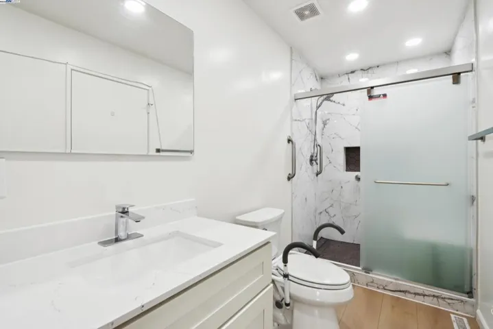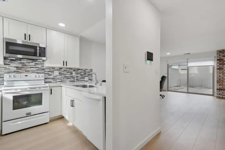 A beautifully appointed townhouse located in coveted Alameda’s Garden Isle community on Bay Farm. This charming and peaceful 2 bedroom/1.5 bath home features an outstanding open floor plan, fully remodeled kitchen and bathrooms with modern finishes, with recess lights and new floor installed throughout the house. The main level has an open living and dining area with a brick fireplace and a large sliding door leading to a lovely and private patio, perfect for gardening and relaxing evenings outside. The updated contemporary kitchen features elegant cabinets, modern style countertops, bar seating, tile backsplash and matching appliances, ideal for cooking and entertaining. In addition, a full laundry room, plenty of storage and a large detached 2-car garage for everyday convenience. Upstairs, you will find 2 spacious bedrooms with large windows and generous closet space, and a fully renovated bathroom. Garden Isle offers tree lined paths, shared green space, a community pool and clubhouse, all close to top Bay Farm schools, shoreline trails, shopping and the San Francisco Bay Ferry. Make this bright and cheery townhouse your new home!