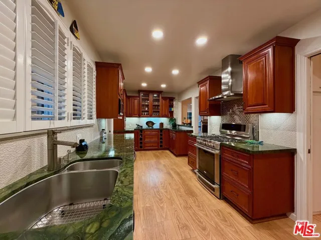 A rare opportunity to own a large-lot single-level home in the heart of Chandler Estates, one of Sherman Oaks’s most sought after neighborhoods. Owned by the same family since the home was built in 1955, this residence has been thoughtfully maintained and upgraded from top to bottom, blending timeless charm with modern sophistication. Set on a wide, tree-lined street, the home draws you in with custom exterior lighting, a brick walkway, and refreshed front landscaping, featuring a tranquil dry riverbed and fountain. The home’s carefully curated garden spaces, designed for low maintenance and maximum enjoyment, include a gazebo with integrated lighting, perfect for an al fresco meal or stargazing. Mature trees and open spaces offer both shade and sunshine, privacy and connection. Inside, the home exudes comfort and quality. Hardwood floors lead you through the house’s light-filled rooms, all framed by plantation shutters. Two sets of French doors open to the backyard, effortlessly facilitating the indoor-outdoor lifestyle California is beloved for. The fully remodeled kitchen is the heart of the home. Both beautiful and functional, the modern cabinetry, premium fixtures, and spacious pantry make cooking and entertaining a delight. This home features three stylish bathrooms – two full and one powder room – each with elegant tile work, glass enclosed showers, custom vanities, and spa quality lighting. The den can easily be converted into a 4th bedroom. Major system upgrades include a new electrical panel, central air and heat, copper plumbing with replaced valves, and a tankless water heater. The home also features a newer roof, modern garage door, and a comprehensive alarm system for peace of mind. Solar panels enhance sustainability and reduce utility costs. Located in the prestigious Chandler Estates, this home sits moments from Ventura Boulevard’s boutiques and cafes, with easy access to major freeways and top-rated schools. The neighborhood’s wide lots, character homes, and quiet streets make it one of Sherman Oaks’s most desirable addresses. Lovingly maintained and updated by one family for nearly seventy years, this home strikes the perfect balance between vintage charm and contemporary comfort. This home is a true Chandler Estates gem, ready for its next chapter.