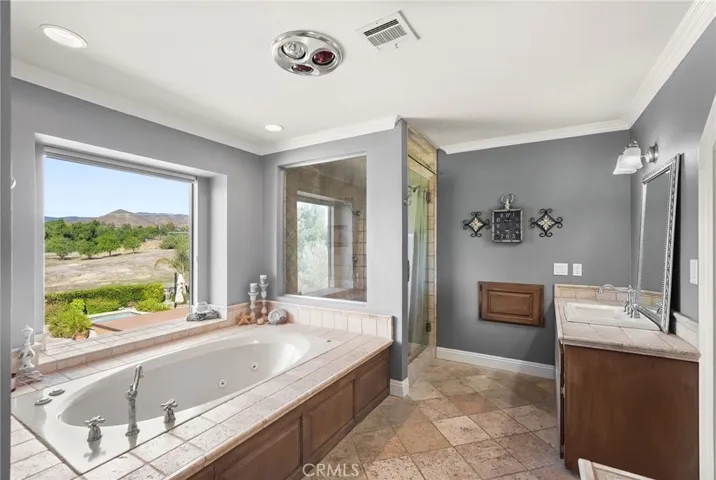 Designed for outstanding outdoor living, the grounds offer multiple spaces for entertaining or quiet relaxation. The pool and spa have been restored to pristine freshwater condition with new heater, pump, and filtration systems. A newly constructed patio expands the outdoor living environment, complemented by tree-lined landscaping, new gutters, and a professionally paved driveway.