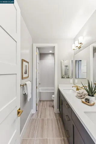A wide, inviting entry with wood floors welcomes you into an open-concept living space where high ceilings and expansive windows create a bright, airy atmosphere. The thoughtfully appointed kitchen features a spacious island with seating, quartz countertops, and premium Bosch appliances—perfect for everyday living and effortless indoor-outdoor living that Walnut Creek is known for. The upstairs layout features a serene primary suite with a generous walk-in closet and a spa-like bath, complete with a soaking tub and a walk-in shower, as well as a conveniently located laundry room. Outside, the professionally landscaped backyard provides a peaceful setting for relaxation, unwinding, entertaining, and play. Set within The Enclave, this intimate collection of homes offers exceptional convenience in a highly desirable location in Walnut Creek. Residents enjoy being just moments from the vibrant energy of downtown, including Broadway Plaza, local restaurants, shops, cafés, parks, and Iron Horse Trail. With easy access to Highway 24/680 and Walnut Creek BART, commuting and weekend adventures are a breeze. Nestled in an established neighborhood yet close to everything, The Enclave provides a rare balance of comfort, connection, and modern living.