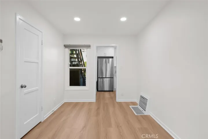 This first-floor unit offers approximately 800 sq. ft. of modern living space featuring recessed lighting, fresh white paint, and beautiful wood-style flooring throughout.