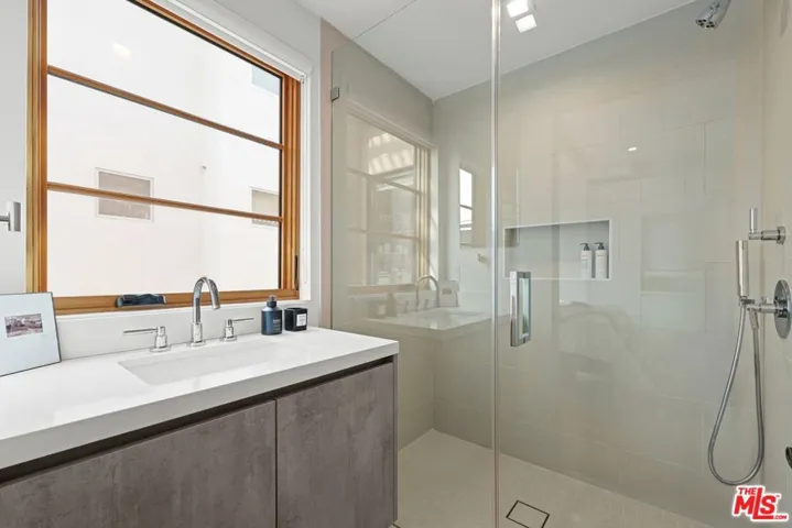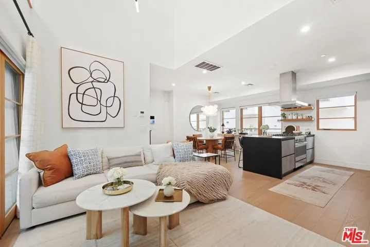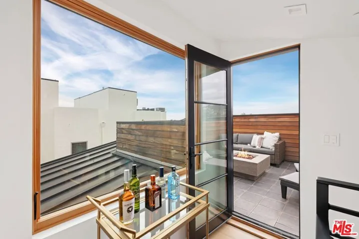 Experience elevated West Hollywood living in this architecturally bold multi-story home one of only four in an exclusive small-lot subdivision. Enter through striking exposed concrete walls and a dramatic floating staircase that rises from the ground-floor garage with car lift to a private rooftop terrace boasting direct views of the Hollywood Sign, Griffith Observatory, downtown LA, Century City, and beyond. The main level features an airy open layout, with a sleek chef’s kitchen, stainless steel appliances, and breakfast bar seamlessly flowing into a sun-drenched living/dining space with soaring ceilings and an inviting patio. Upstairs, the expansive primary suite offers a generous walk-in closet, while two additional bedrooms share a chic Jack-and-Jill bath. On the rooftop, a gas fireplace anchors 360-degree views for the ultimate Hollywood lifestyle all just moments from Melrose Place, Plummer Park, and the best of the city.
